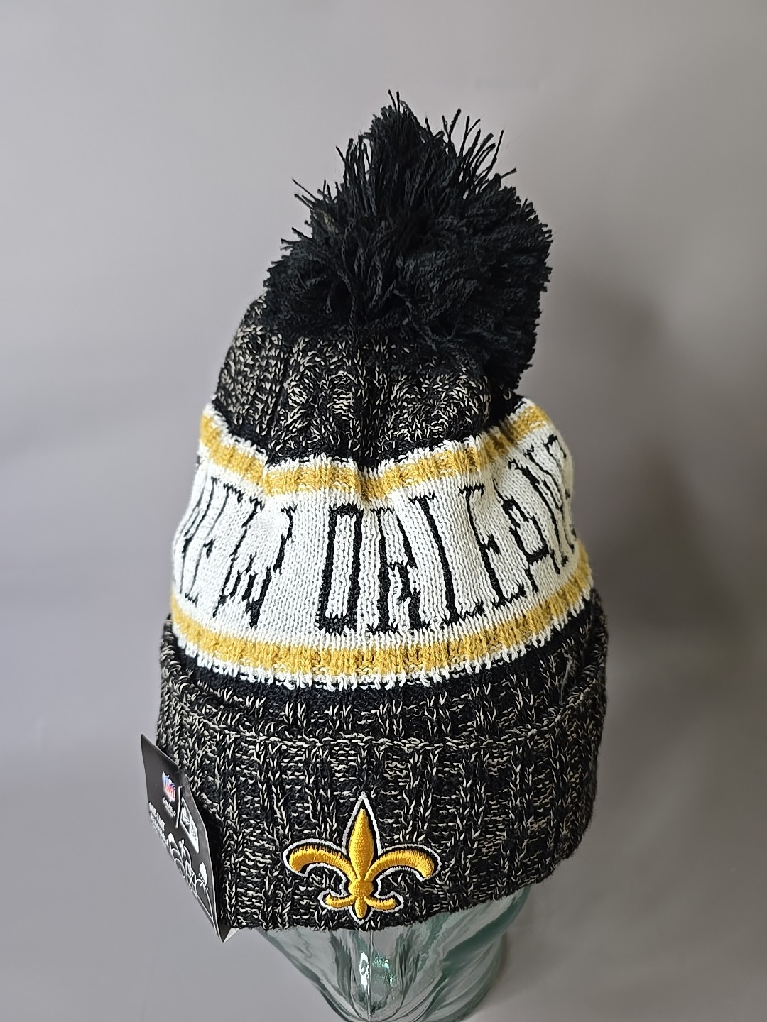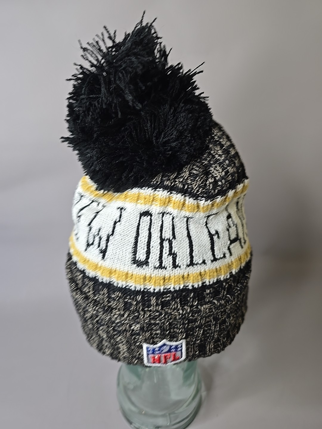 New Era Embroidered Insignia New Orleans Saints Sport Knit Beanie Black Gold Pom