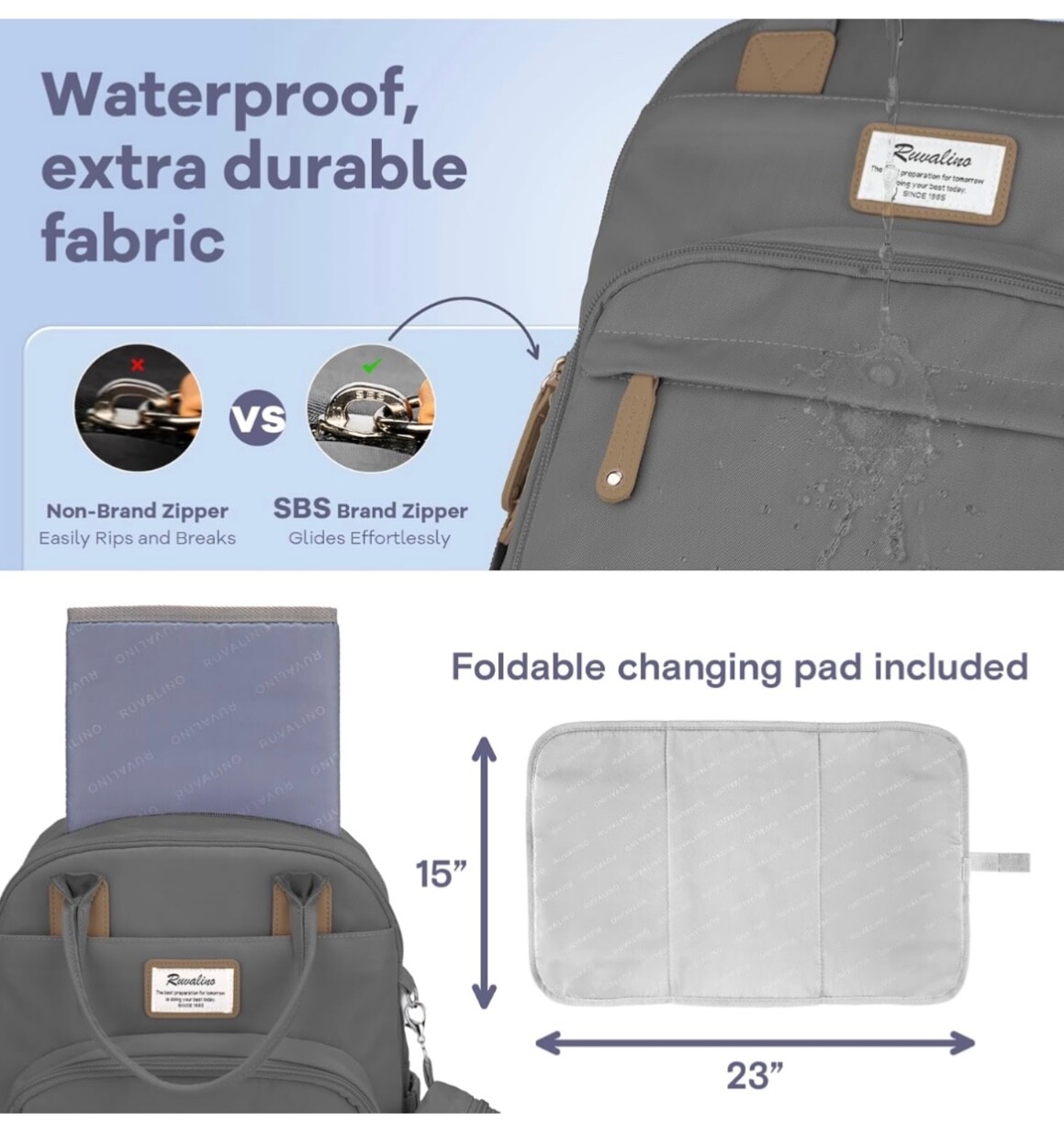 RUVALINO Diaper Bag Backpack Multifunction Travel Pack Maternity Baby Changing