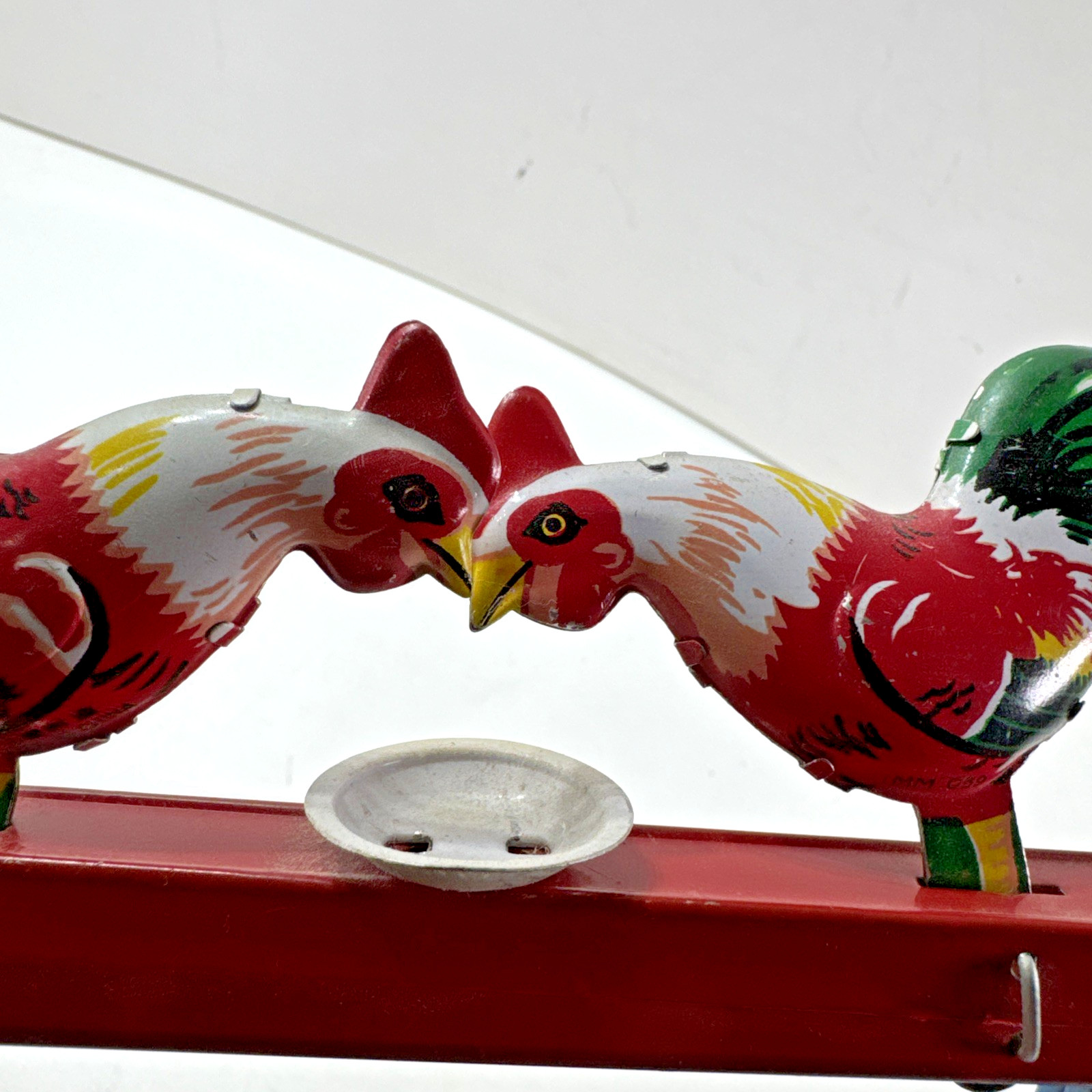 Vintage Tin Pecking Eating Rooster Cock Chickens Hand Squeeze Toy 5.75 L X 6 H