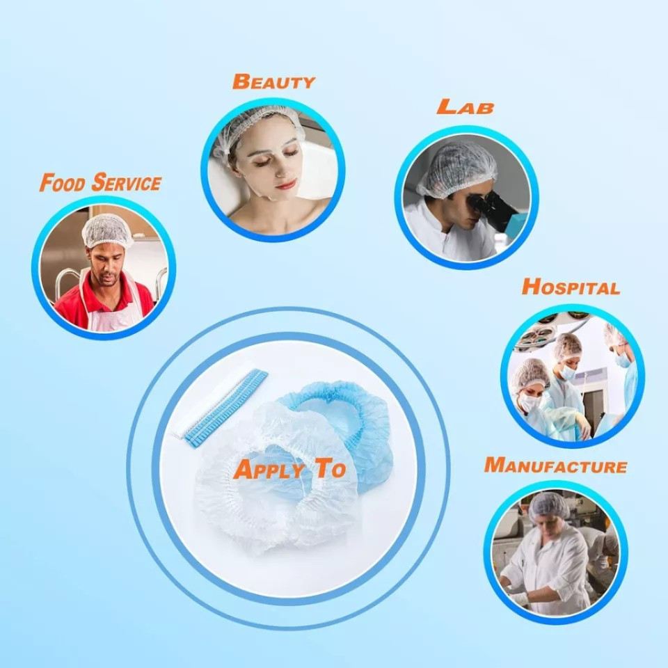 100 pcs Disposable Hair Net Non-Woven Head Bouffant Hair Cap 21