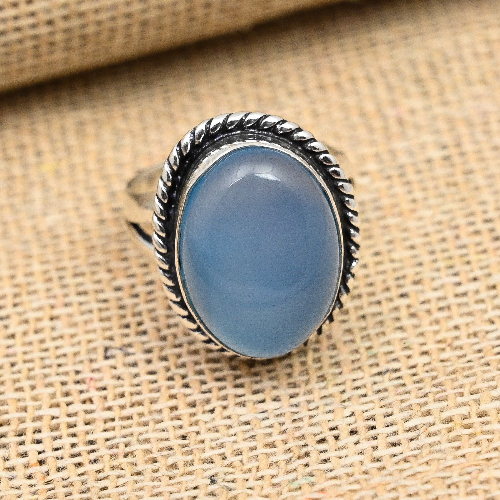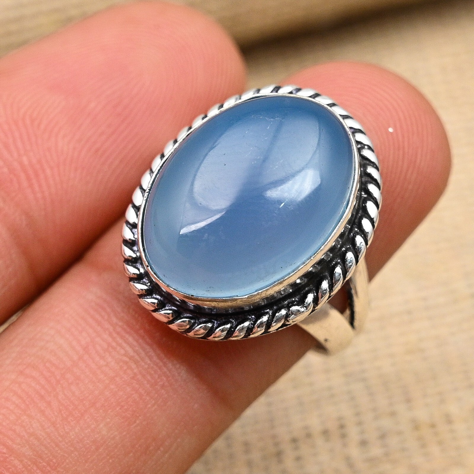 Blue Chalcedony Gemstone Handmade 925 Sterling Silver Ring Jewelry