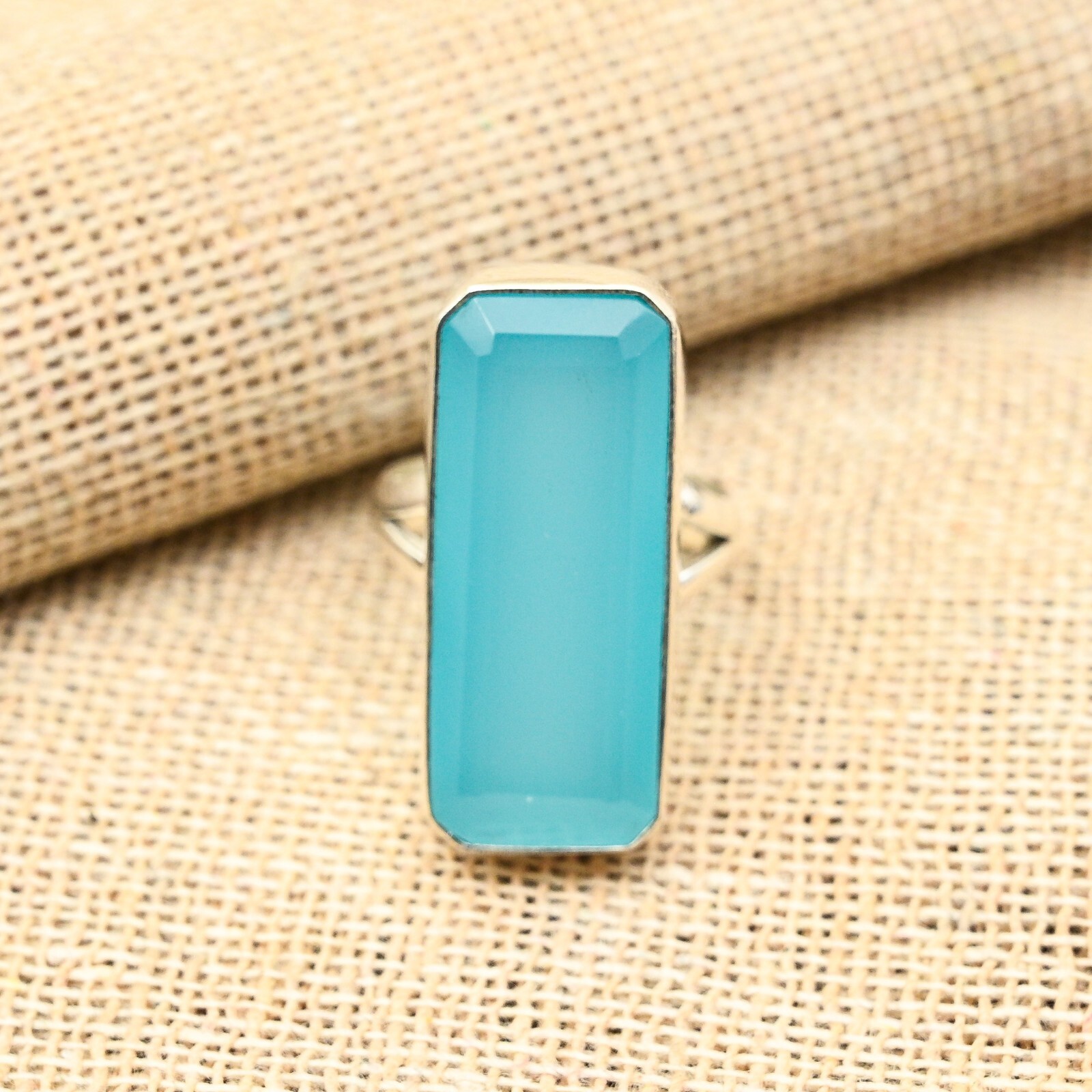Blue Chalcedony Gemstone Handmade 925 Sterling Silver Ring Jewelry