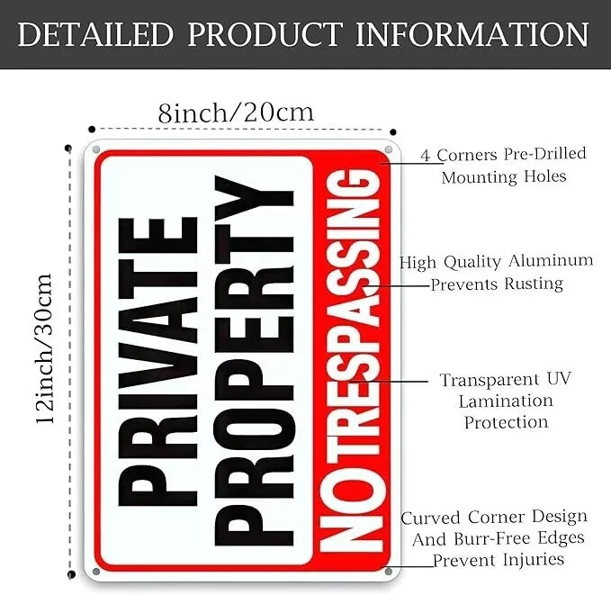 4 Pack Large No Tresspassing Sign Private Property 8X12 Inch Rust Free Aluminum,