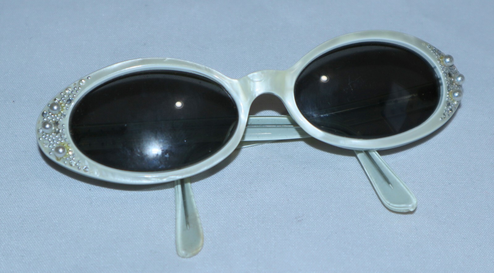 Vintage Oval Sunglasses Jeweled Pearl Frame Made in France 50/20 - Beauty