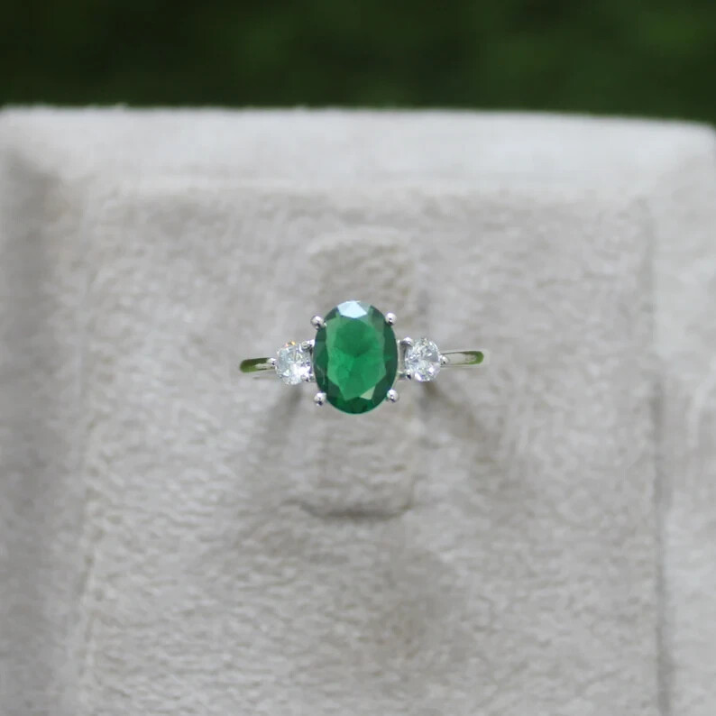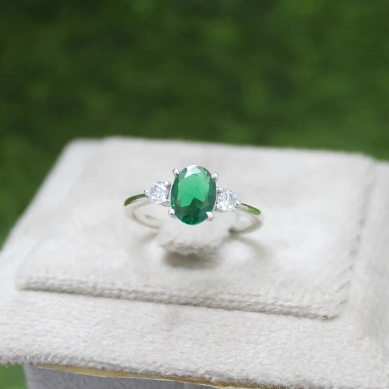 Emerald Ring Sterling Silver Ring Genuine Emerald Engagement statement ring