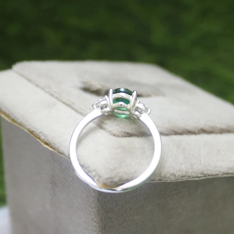 как выглядит Emerald Ring Sterling Silver Ring Genuine Emerald Engagement statement ring фото