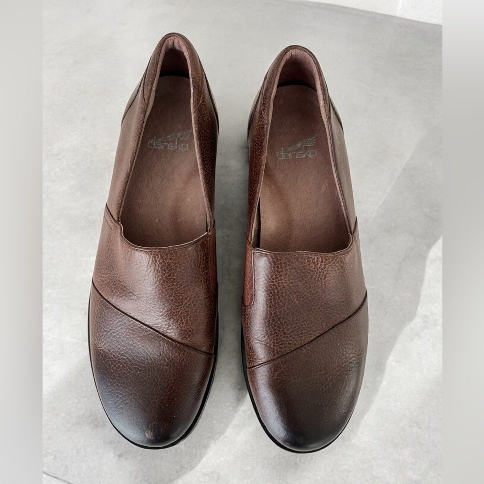 как выглядит Dansko Julia brown leather comfort loafers 38 US фото