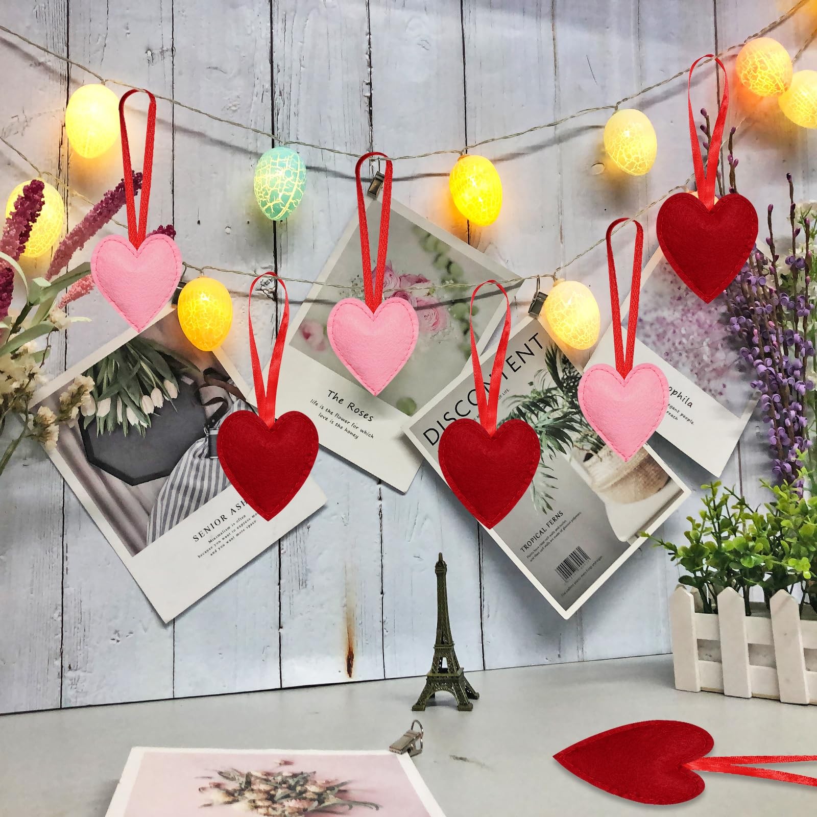 24 Pieces Felt Heart Hanging Ornament Valentines Heart Shaped Ornaments for W...