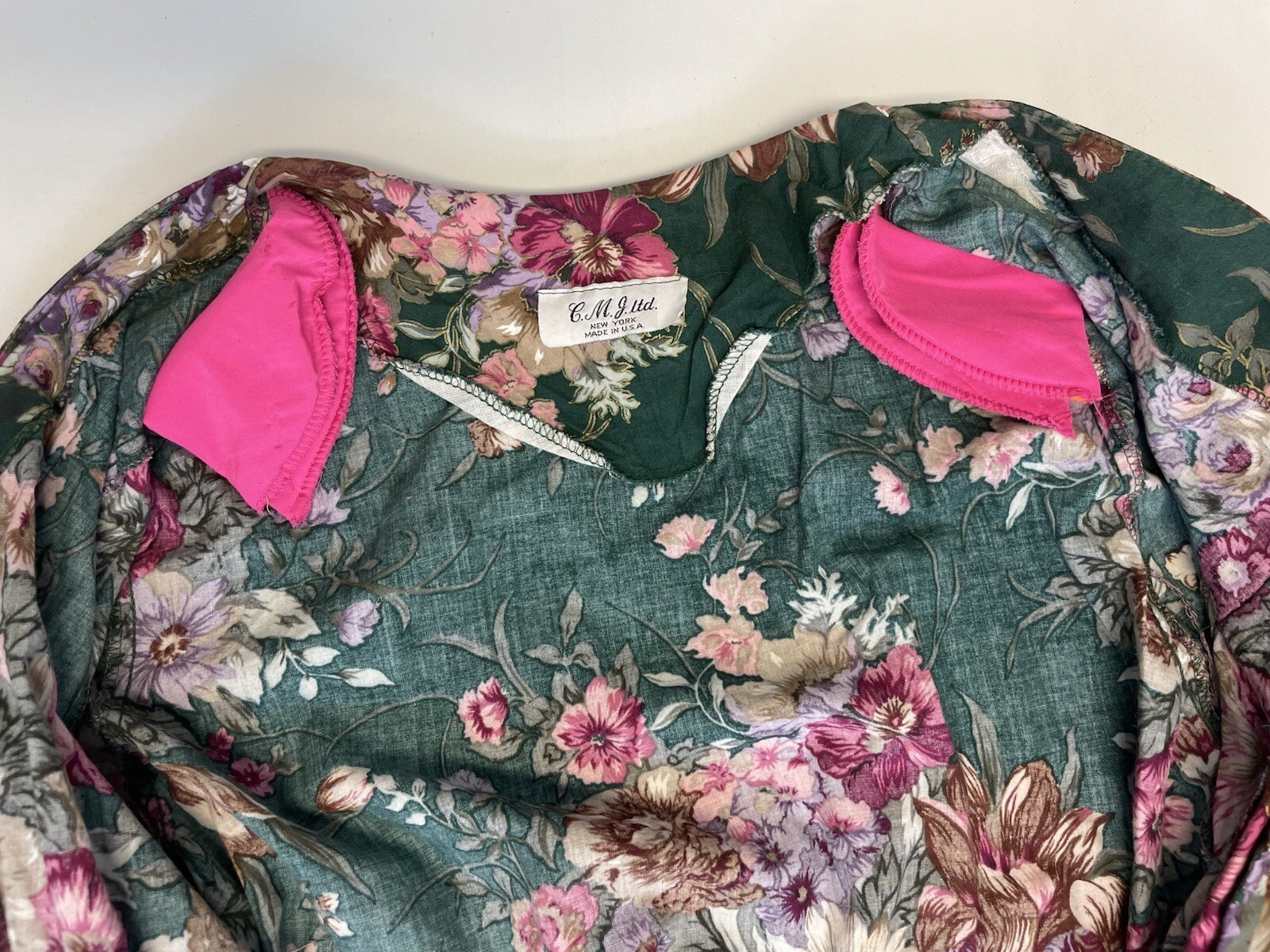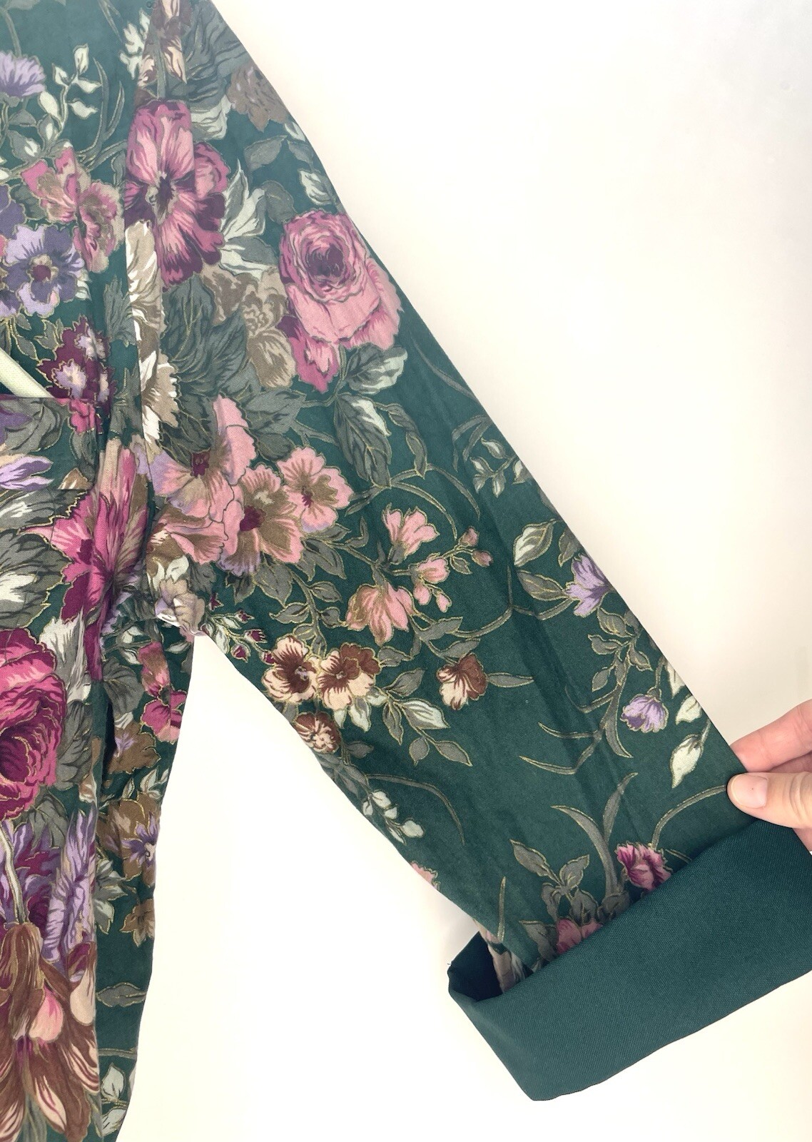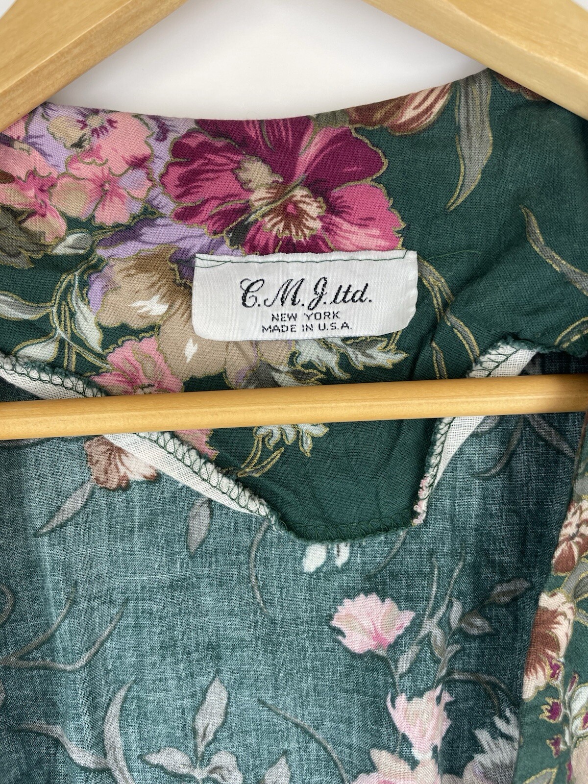 как выглядит Vintage Floral Kimono Open Long Cardigan Green Pink C. M. J. Ltd. Y2K Gold фото
