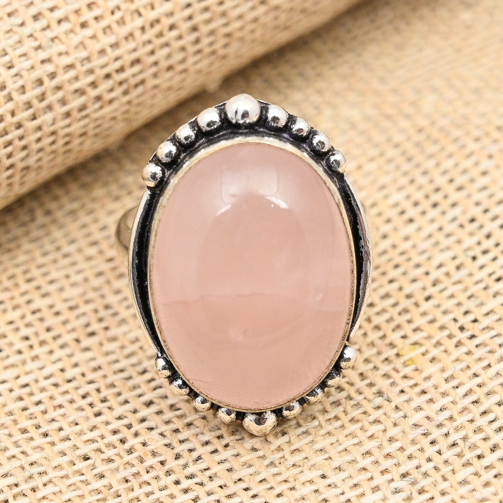 Rose Quartz Gemstone Handmade 925 Sterling Silver Ring Jewelry