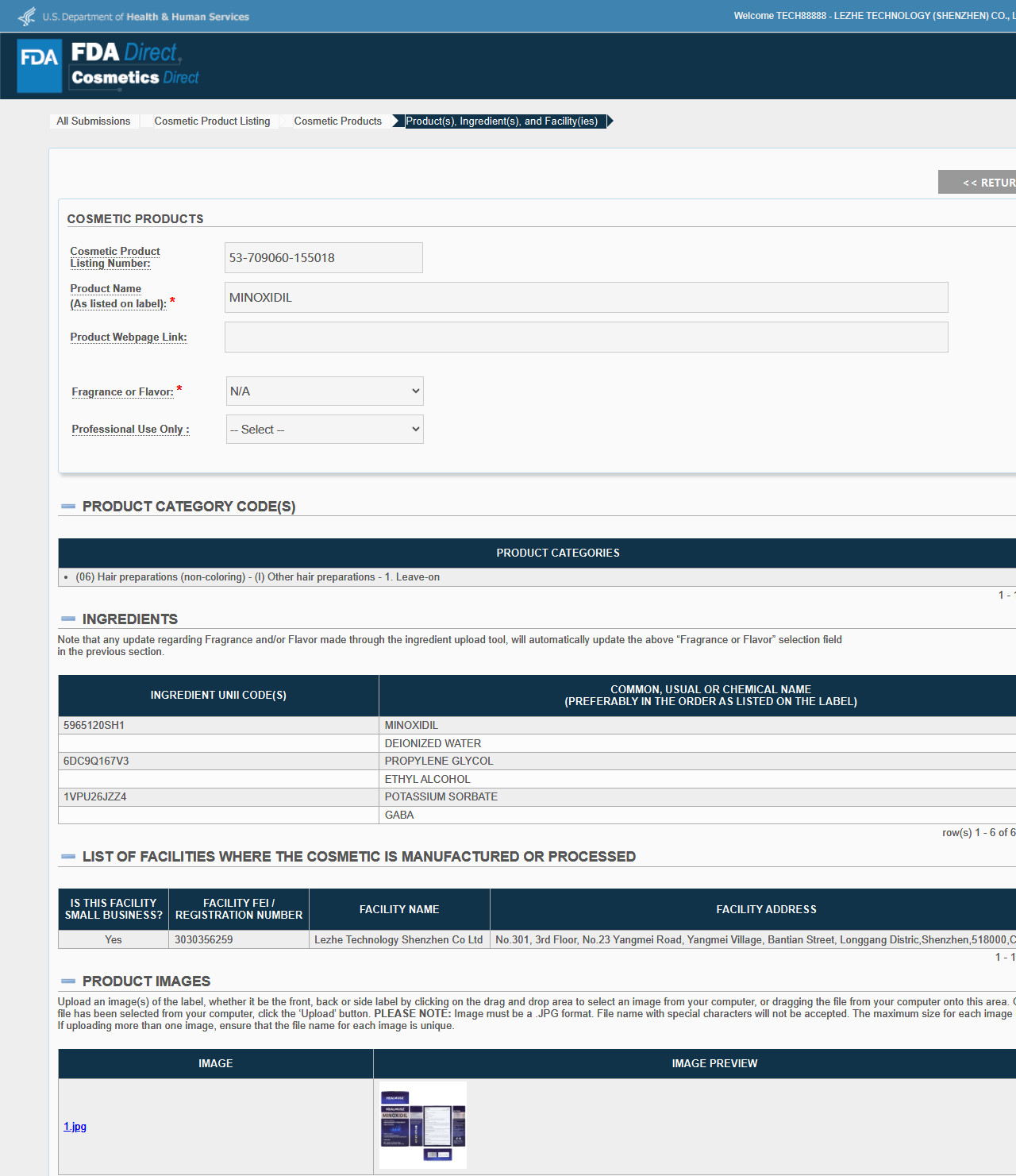 Active Ingredients: Minoxidil 5%