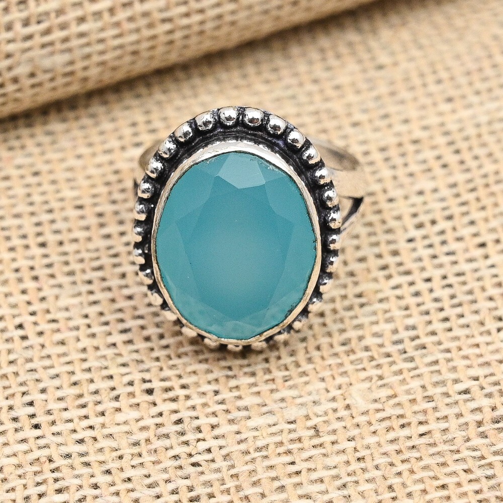 Blue Chalcedony Gemstone Handmade 925 Sterling Silver Ring Jewelry