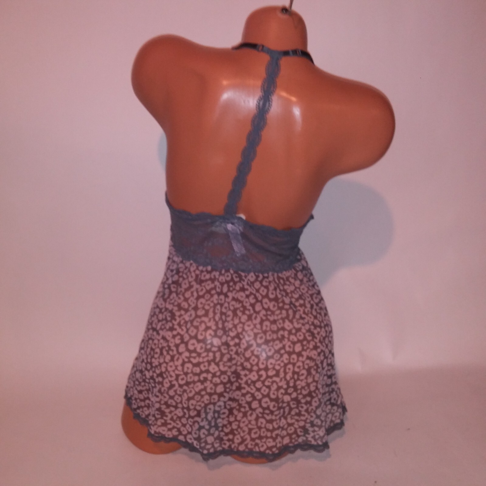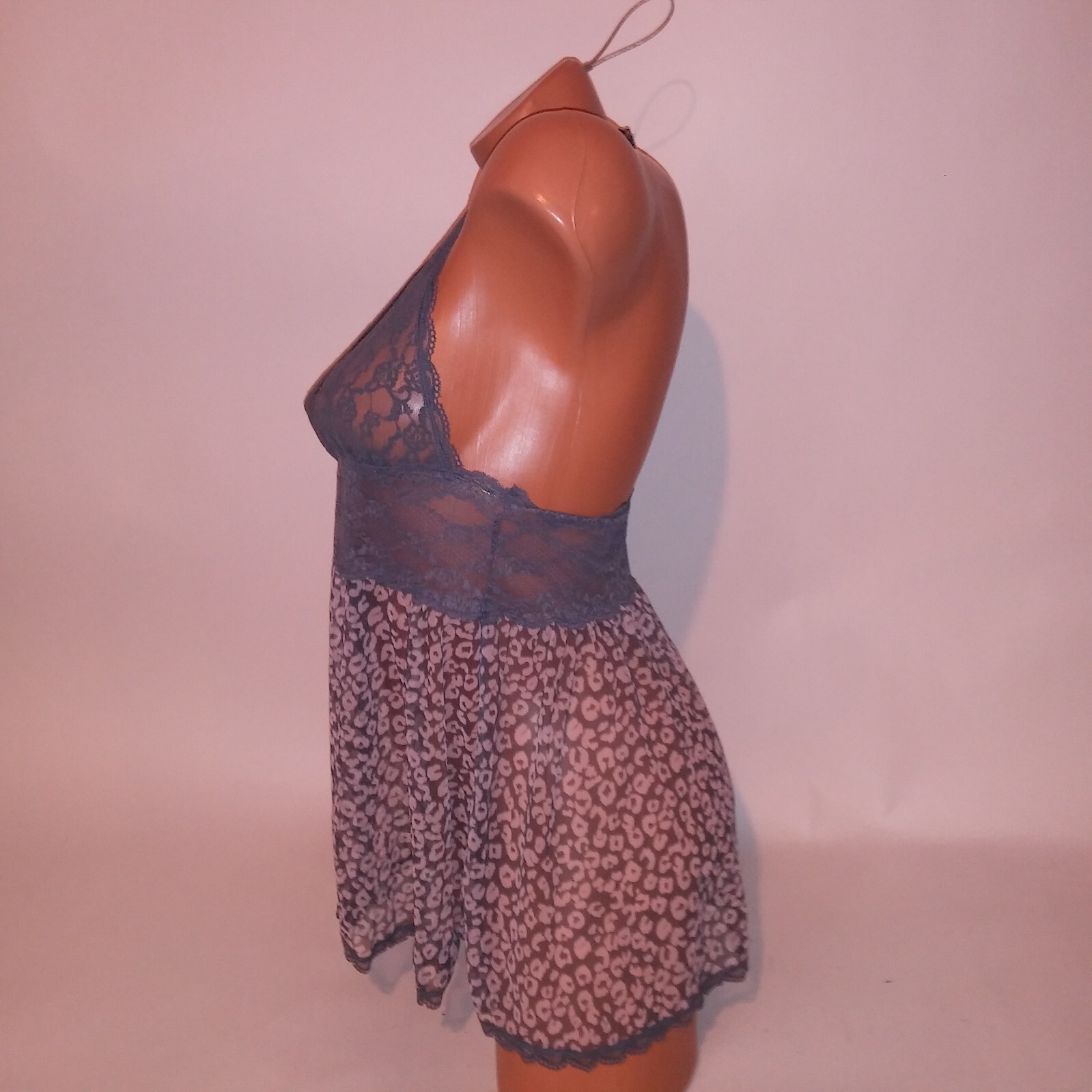 как выглядит Victoria Secret Lingerie Chemise Slip Babydoll Medium Gray Leopard Sheer Lace фото