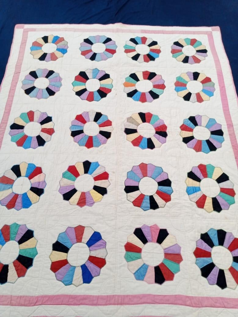 • Vintage Beautiful Quilt Different Pieces Hand Woven size 65x82 inches
