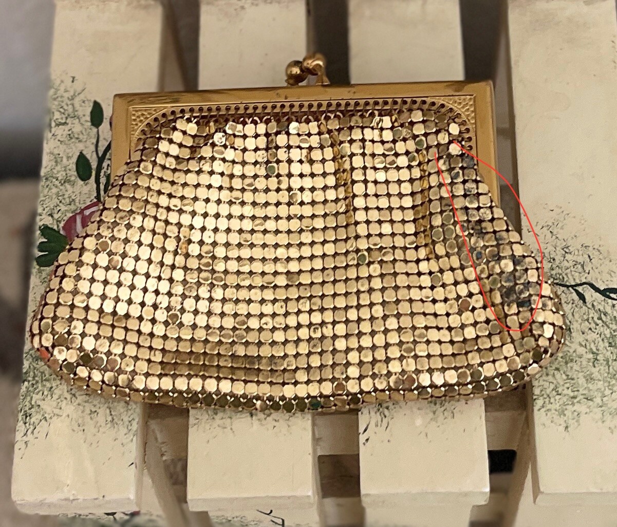 Vintage WHITING DAVIS Gold Mesh Kiss lock Coin Purse Bag Made In USA.