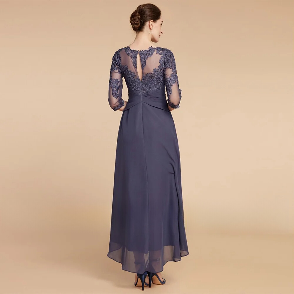 Chiffon Mother of The Bride Dresses 3/4 Sleeve Appliques Pleats Party Prom Gowns