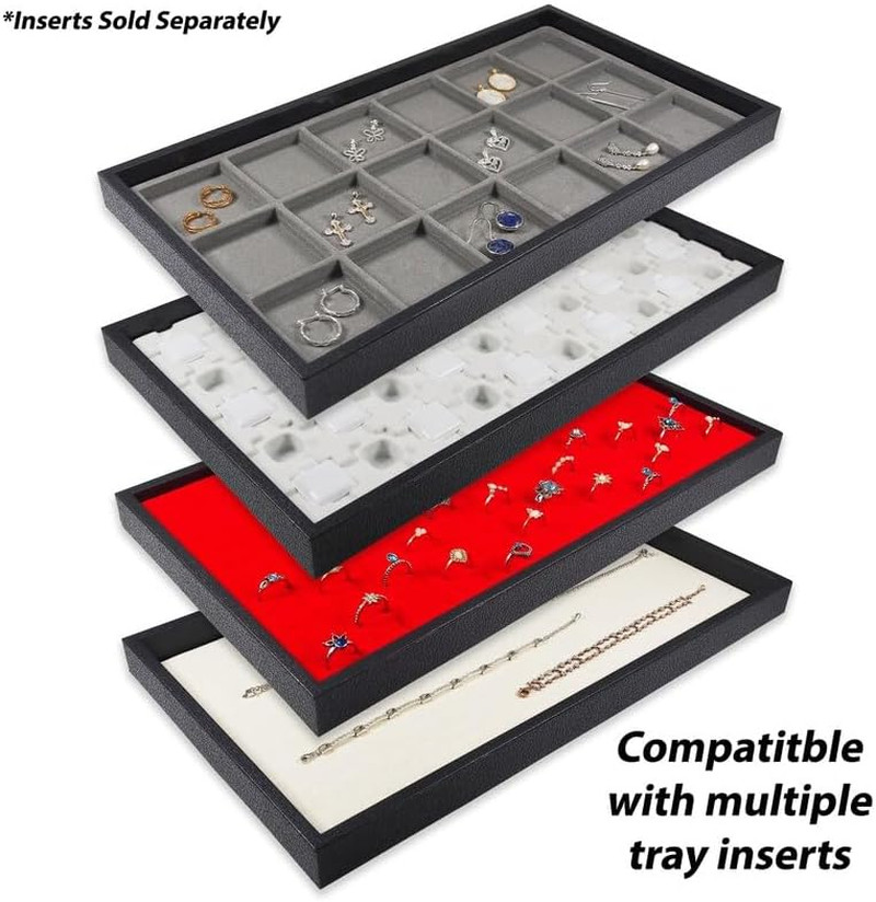 6 Pack of Black Plastic Stackable Standard Size Jewelry Display Trays. Display R