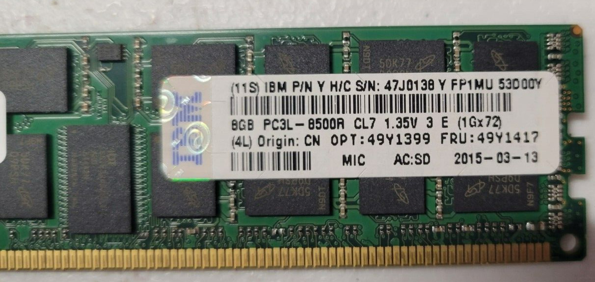 160GB 20x8GB 4RX8 PC3L-8500R-7-13-H0 Micron MT36KSF1G72PDZ LENOVO IBM 47J0138
