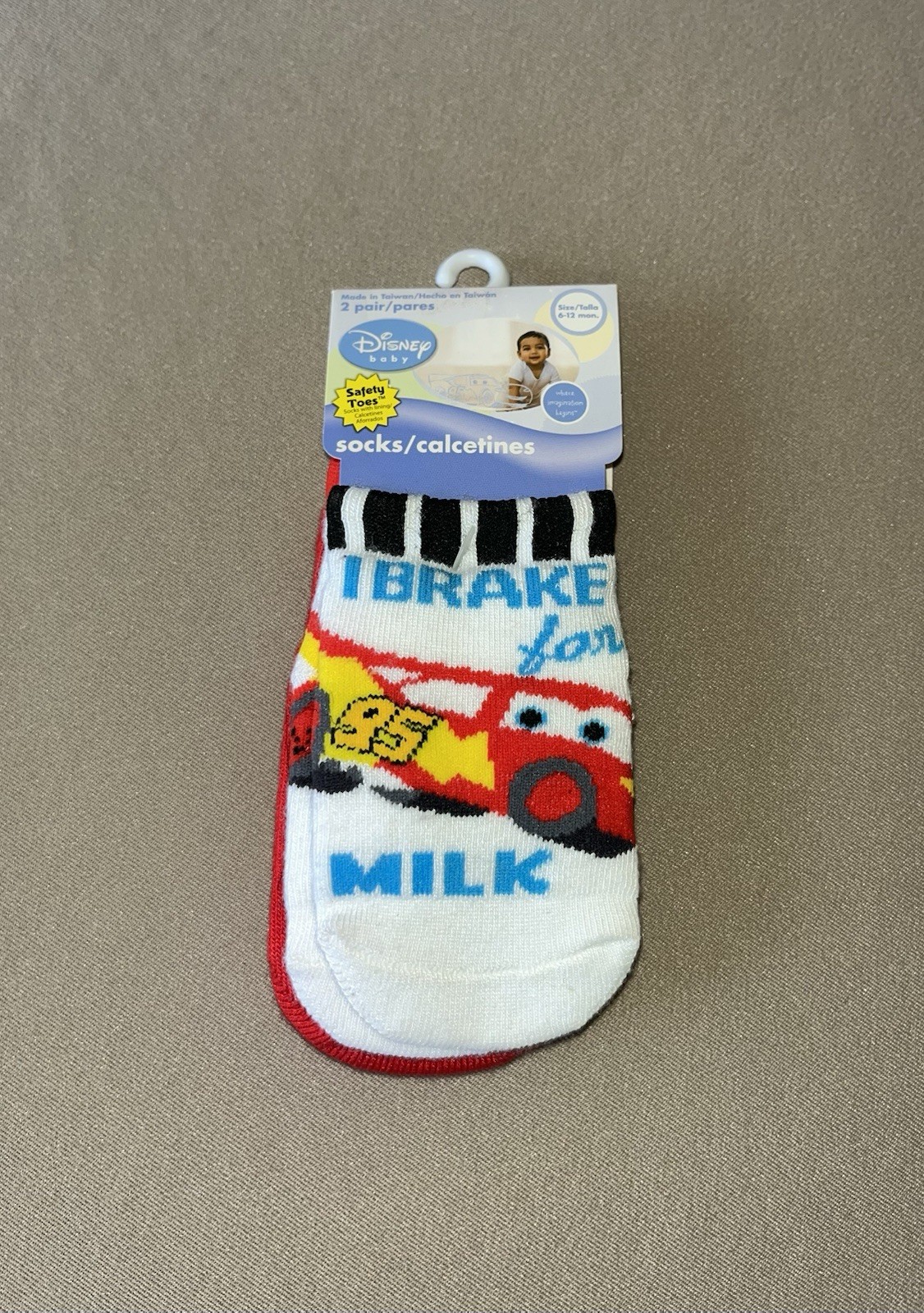 2 Pairs Of Disney Cars Lightening McQueen 6-12 Months Baby Socks New With Tags