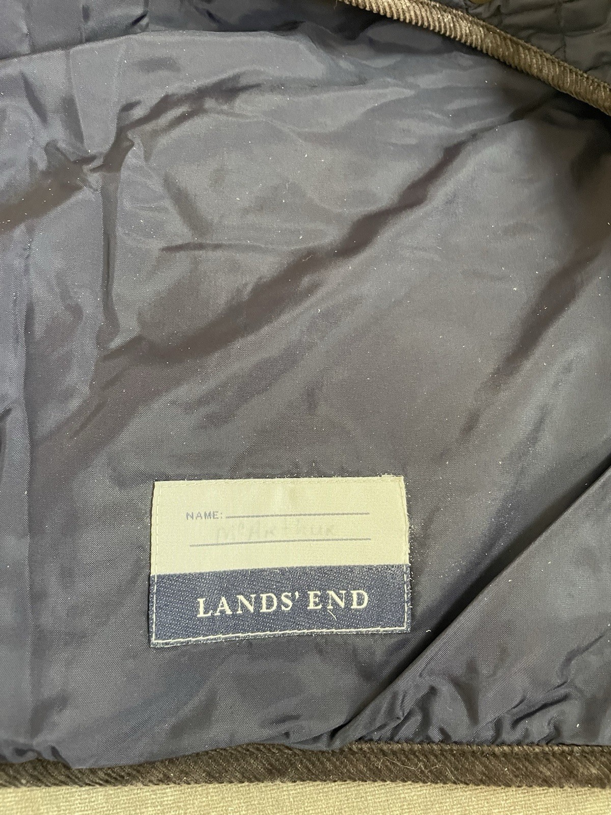 как выглядит Lands End Kids Blue Collared Quilted Barn Jacket Medium 10/12 фото