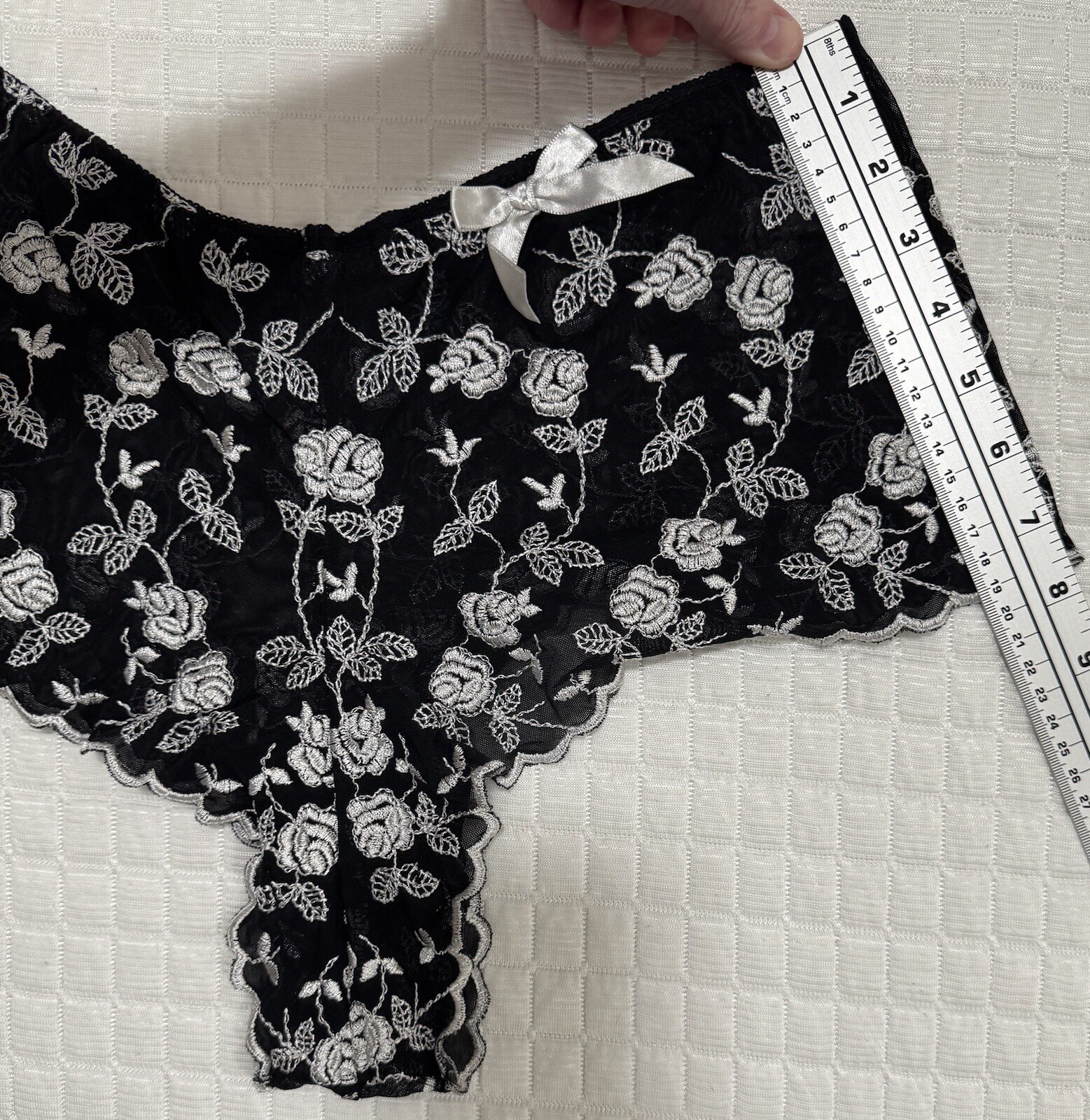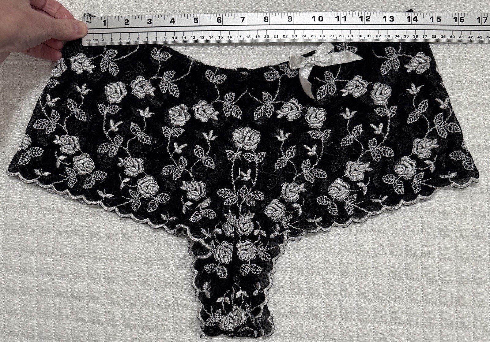 как выглядит Boyshorts Black Lace White Embroidered Floral Low Rise Bow Panties Lingerie L фото