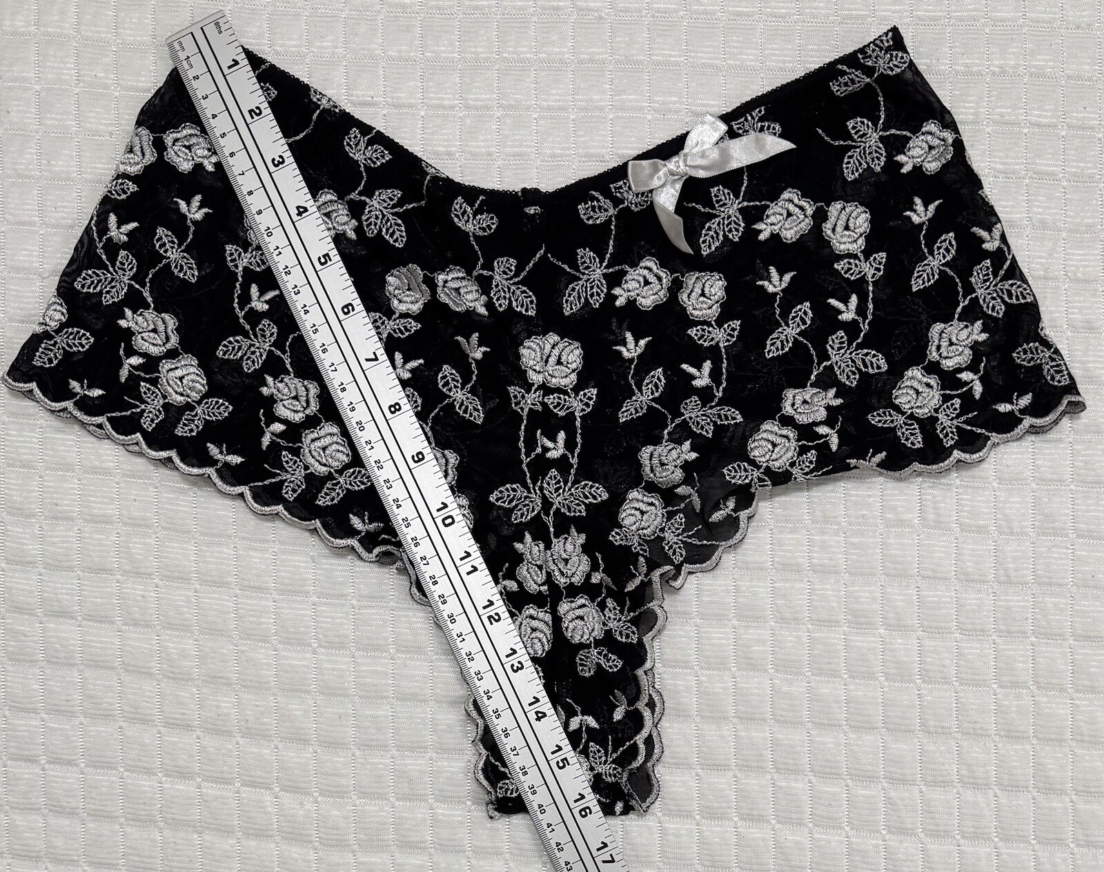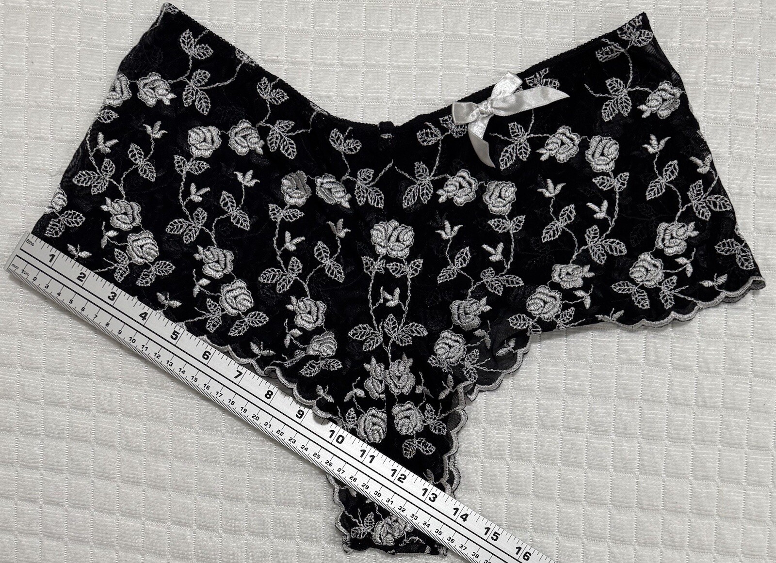 Boyshorts Black Lace White Embroidered Floral Low Rise Bow Panties Lingerie L