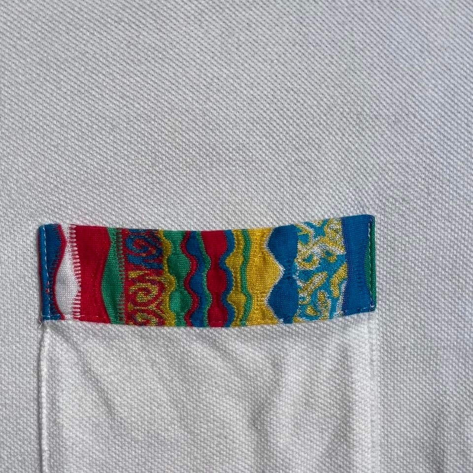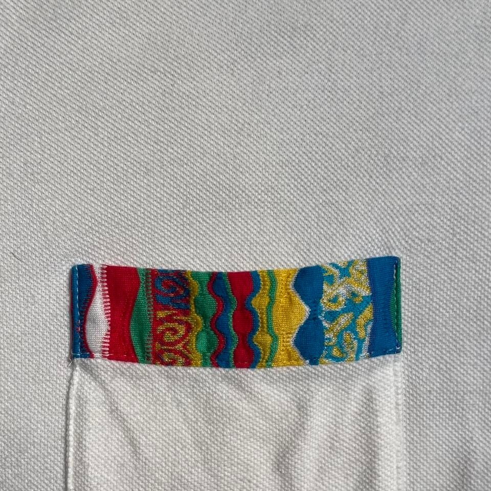 как выглядит Vintage white multicolored collared coogi Australia white polo shirt фото