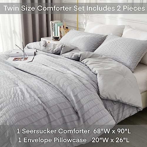 Light Gray Seersucker Twin/Twin XL Comforter Set 68x90 inches , 2 Pieces