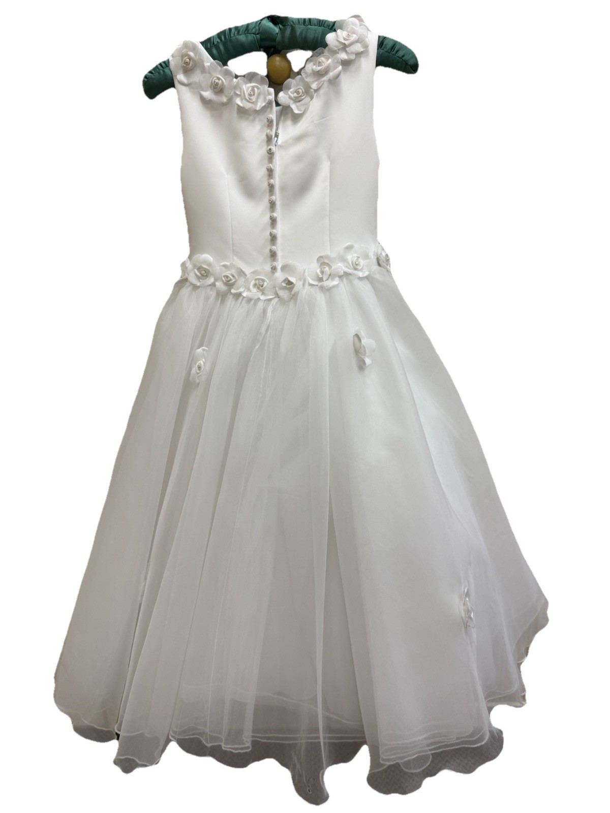 Girl s Holy Communion White Floral Roses Rhinestones Dress Size 8