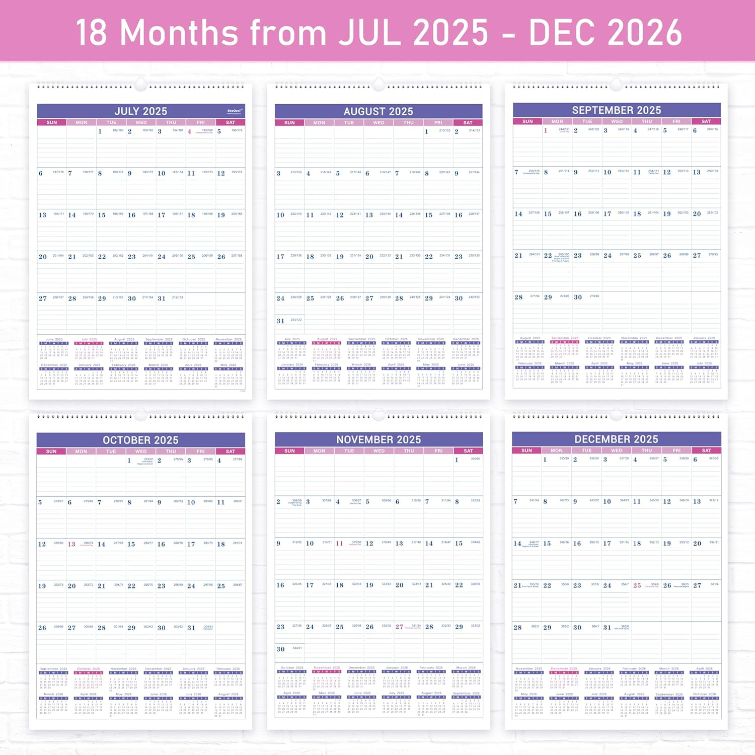 как выглядит 2025-2026 Wall Calendar - July 2025 - December 2026, 18 Months Wall Calendar 202 фото