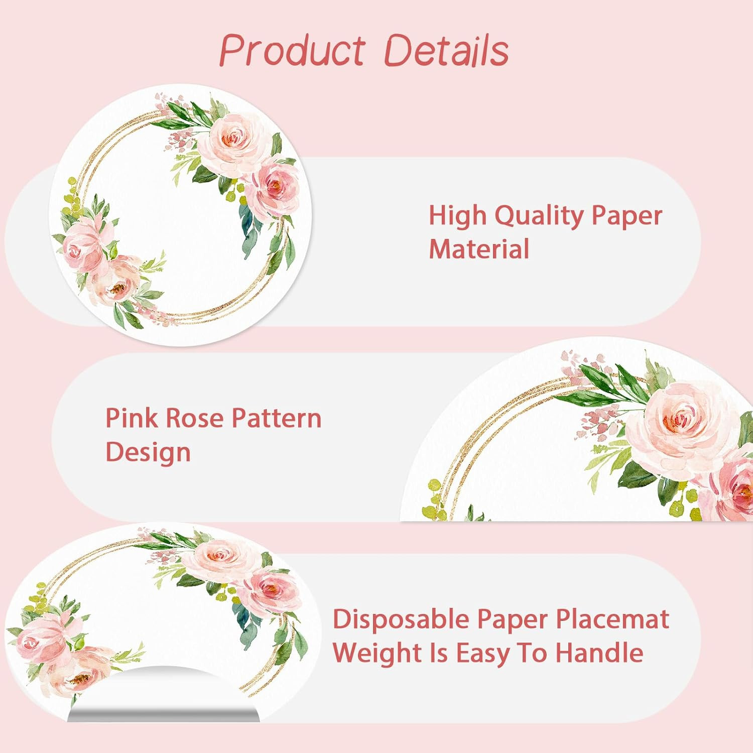 50 Pack Paper Placemats Disposable Pink Floral Wedding Disposable Placemats 1...