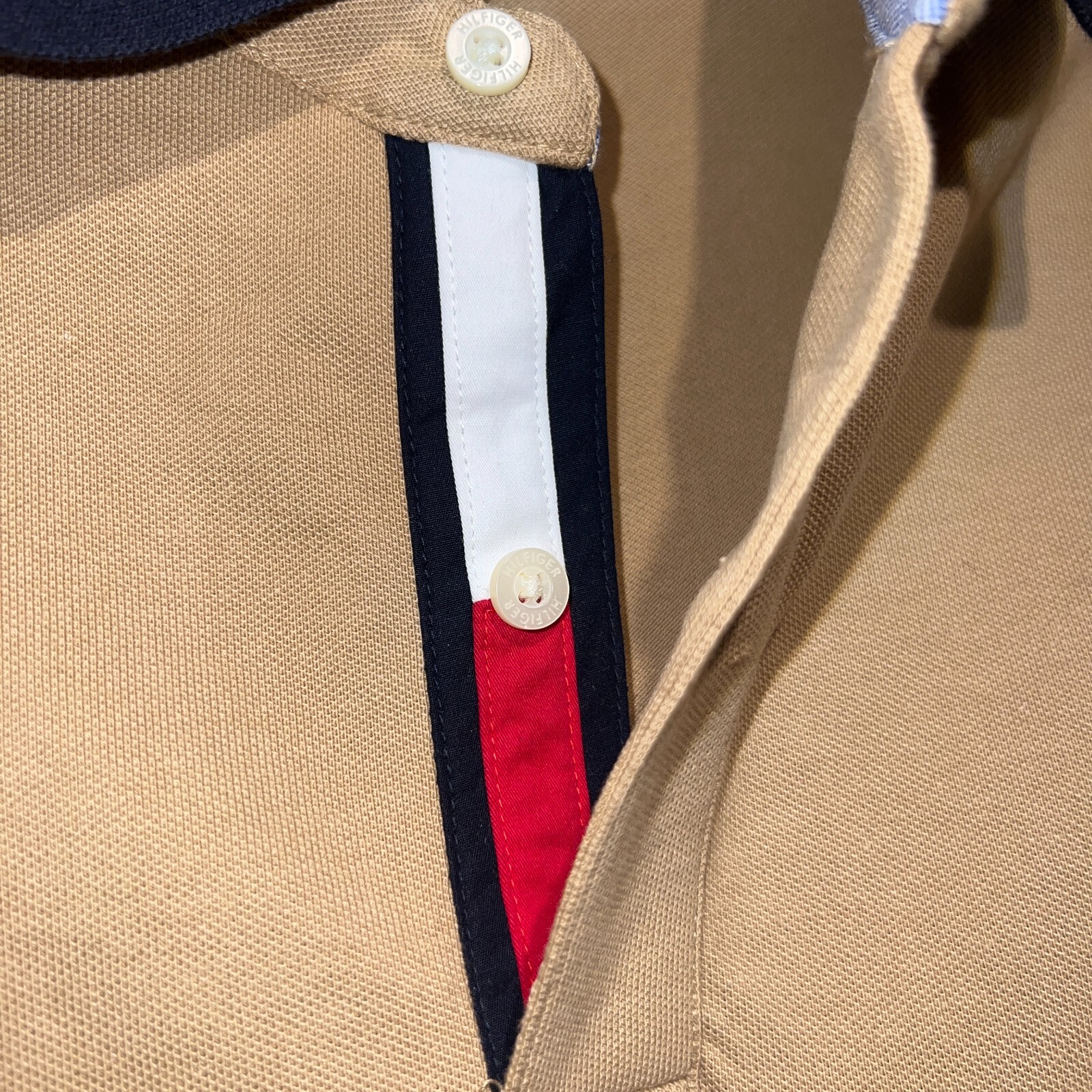 Tommy Hilfiger Men's Flag Placket Collar Short Sleeve Polo Small Med Khaki NWT
