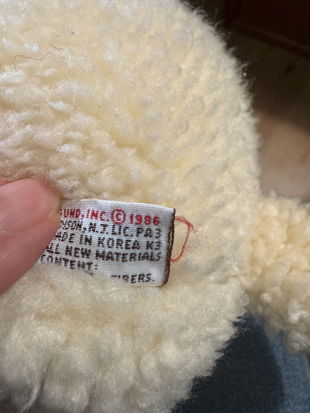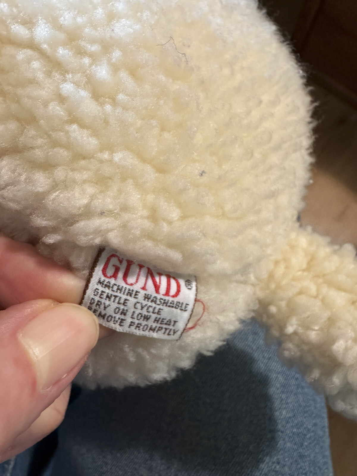 как выглядит Vintage 1986 GUND Woolie Lamb w/Bell Plush Sheep With Pink Under Ear 12" фото