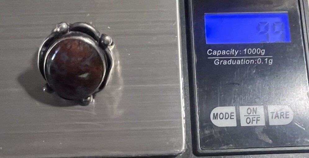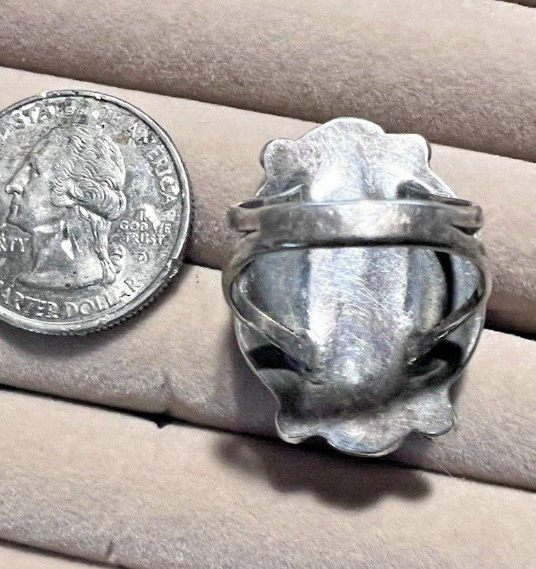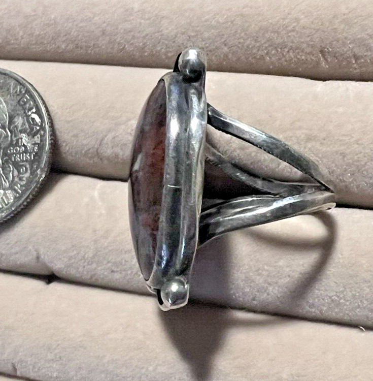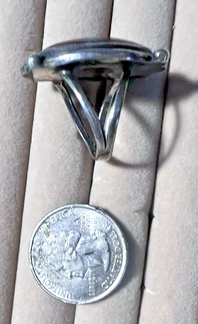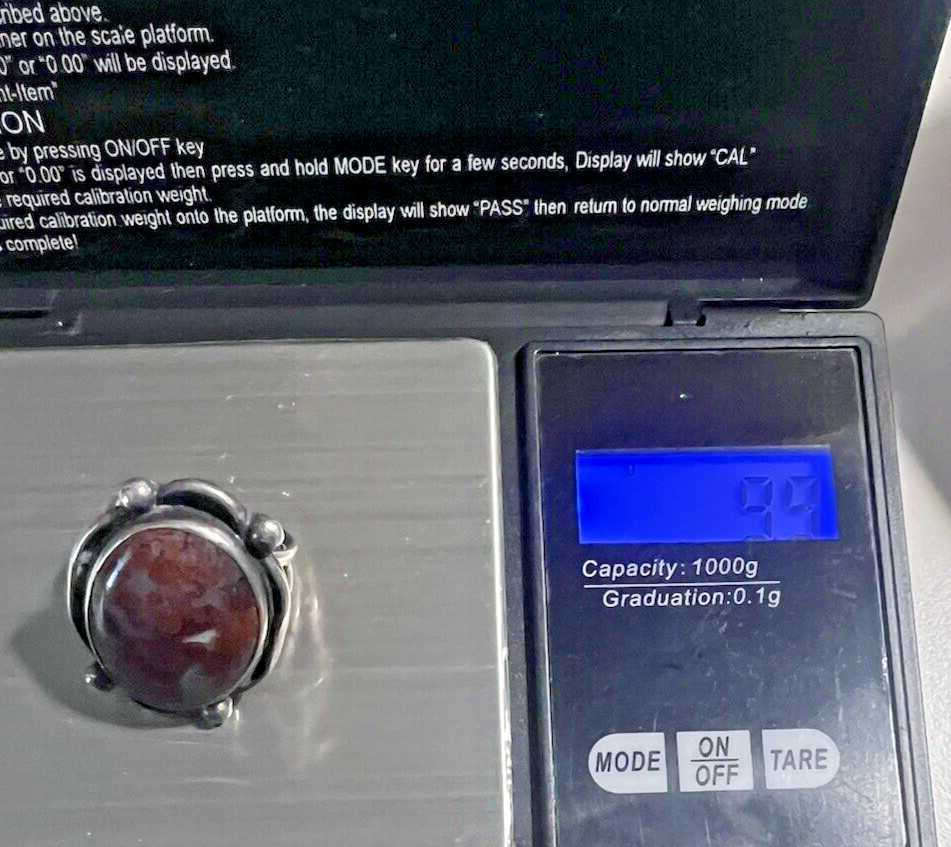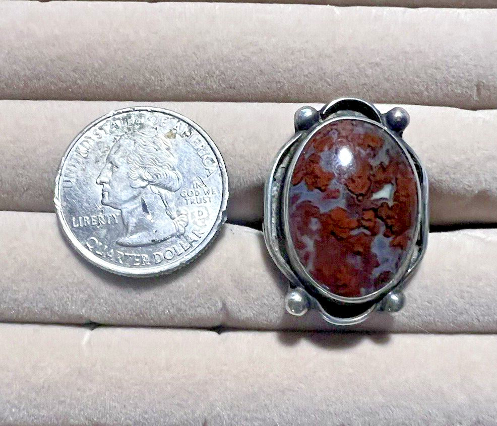 Sterling Silver Lg Oval 9.8g Crazy Lace Agate Ring SZ 7.5