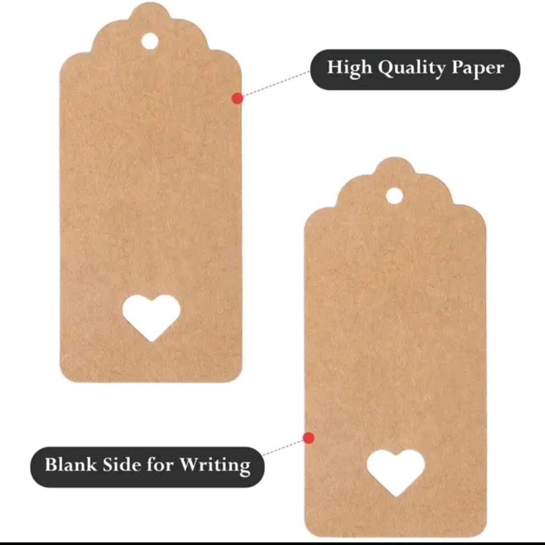 100 - Kraft Paper Cut-Out Heart Large Blank Retail Garment Tags w/ Twine