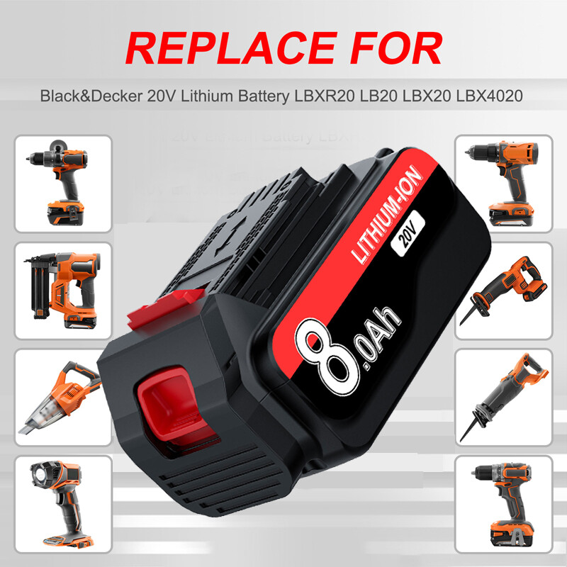 20V MAX Lithium-ion Battery for Black and Decker 20 Volt 8.0Ah LBXR20 LB20 LBX20