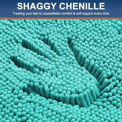 Luxury Chenille Bathroom Rugs 47x17, Extra Soft and 47'' x 17'' Turquoise