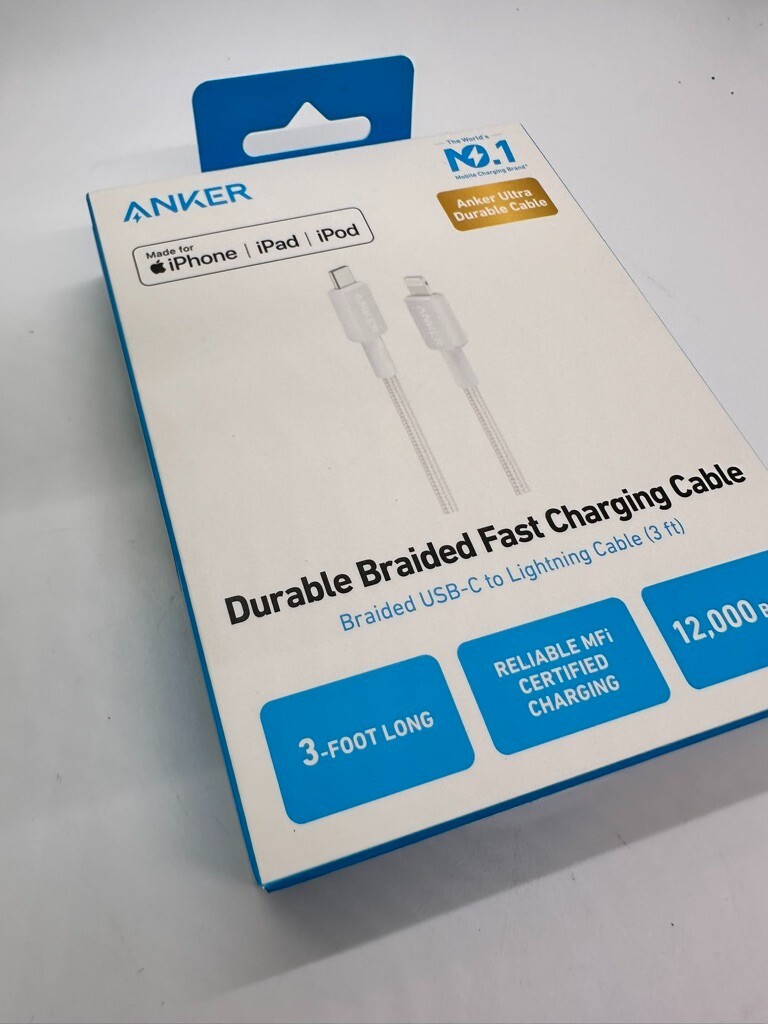 Anker 3' Braided Lightning to USB-C Fast Charging Cable - White