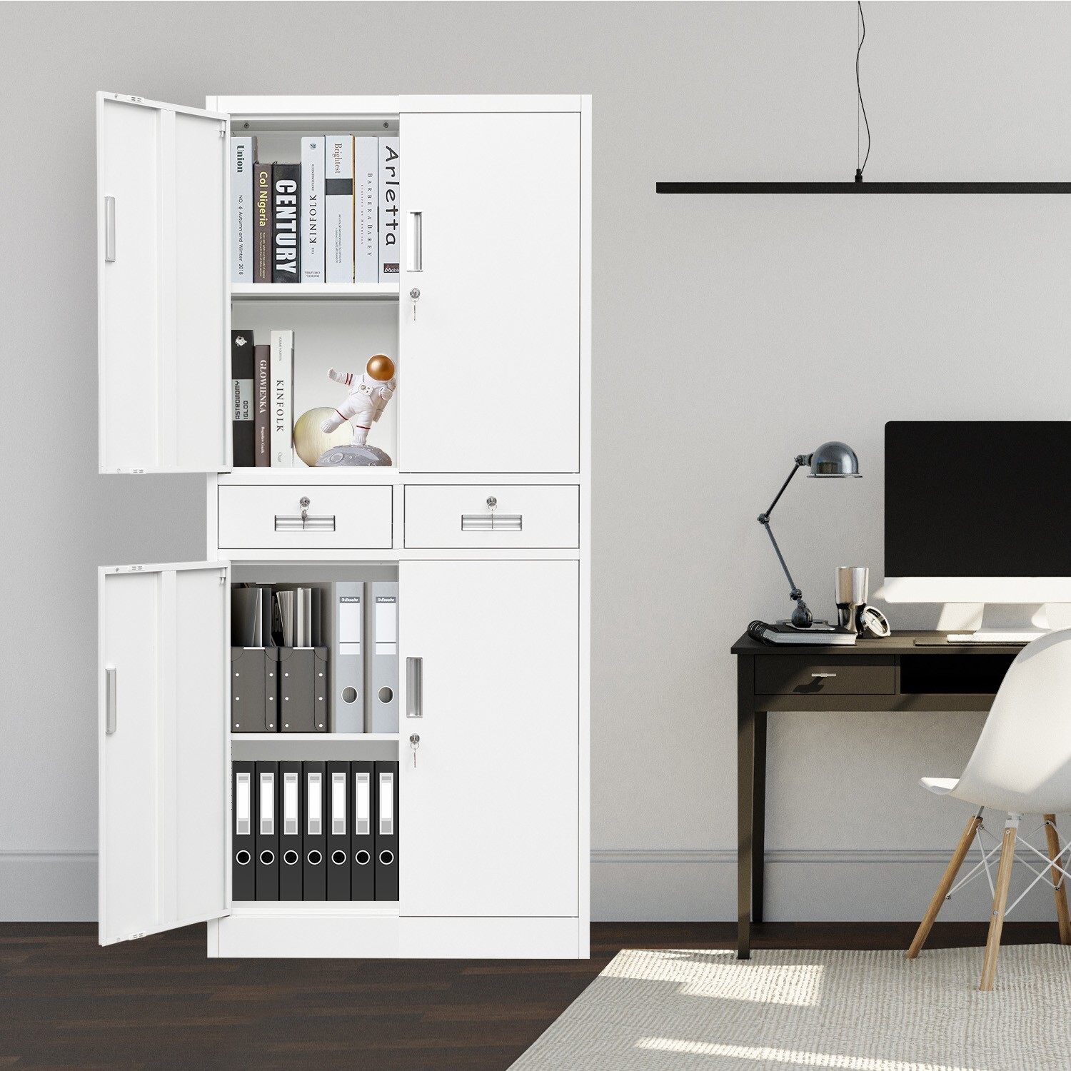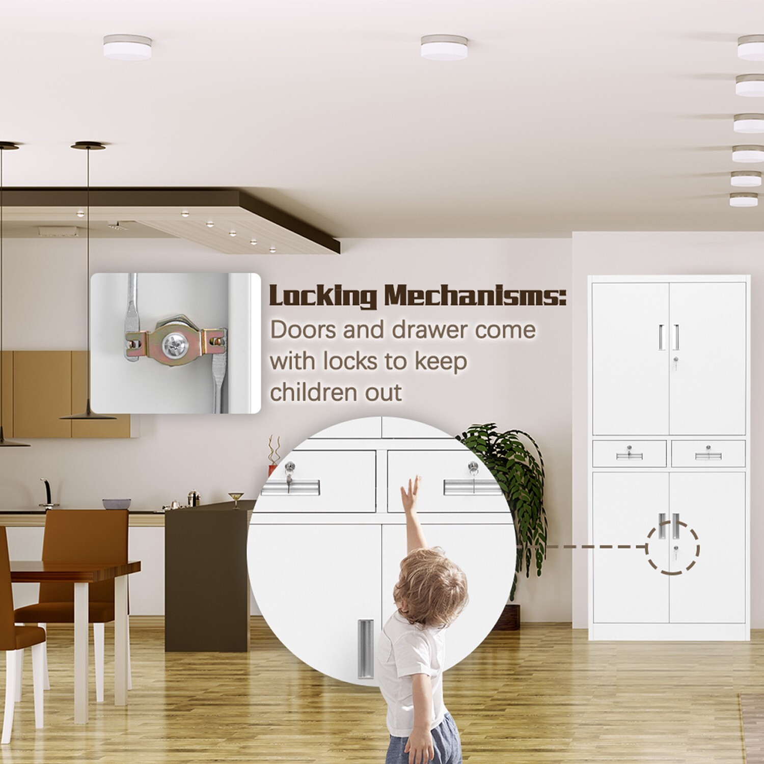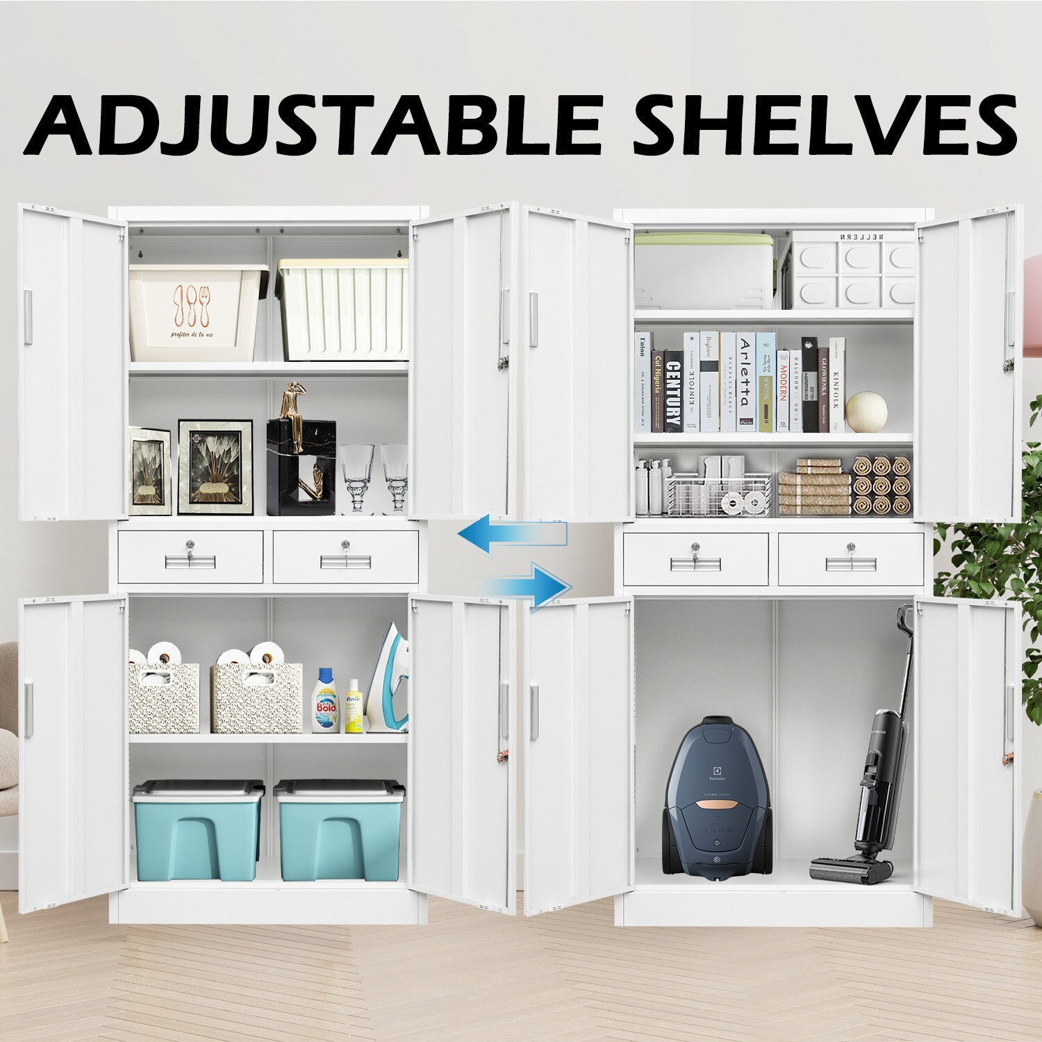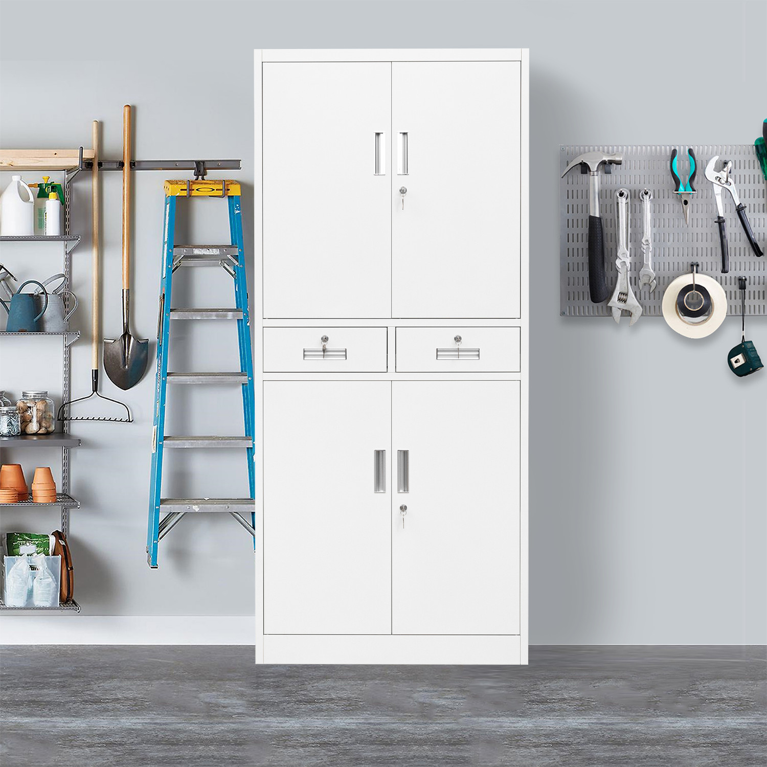 Metal Storage Cabinet with Adjustable Shelves and Drawers, Locking Cabinet