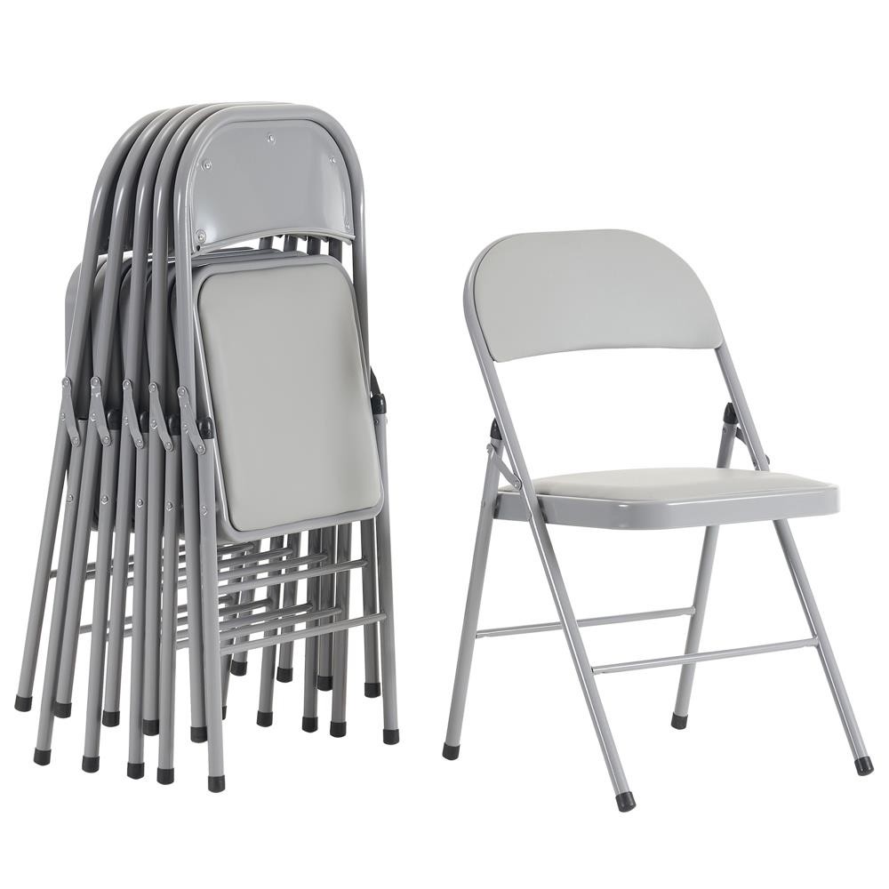 Pack of 6 Heavy Duty Metal Frame Folding Chair High Back PU Padded Seat Gray
