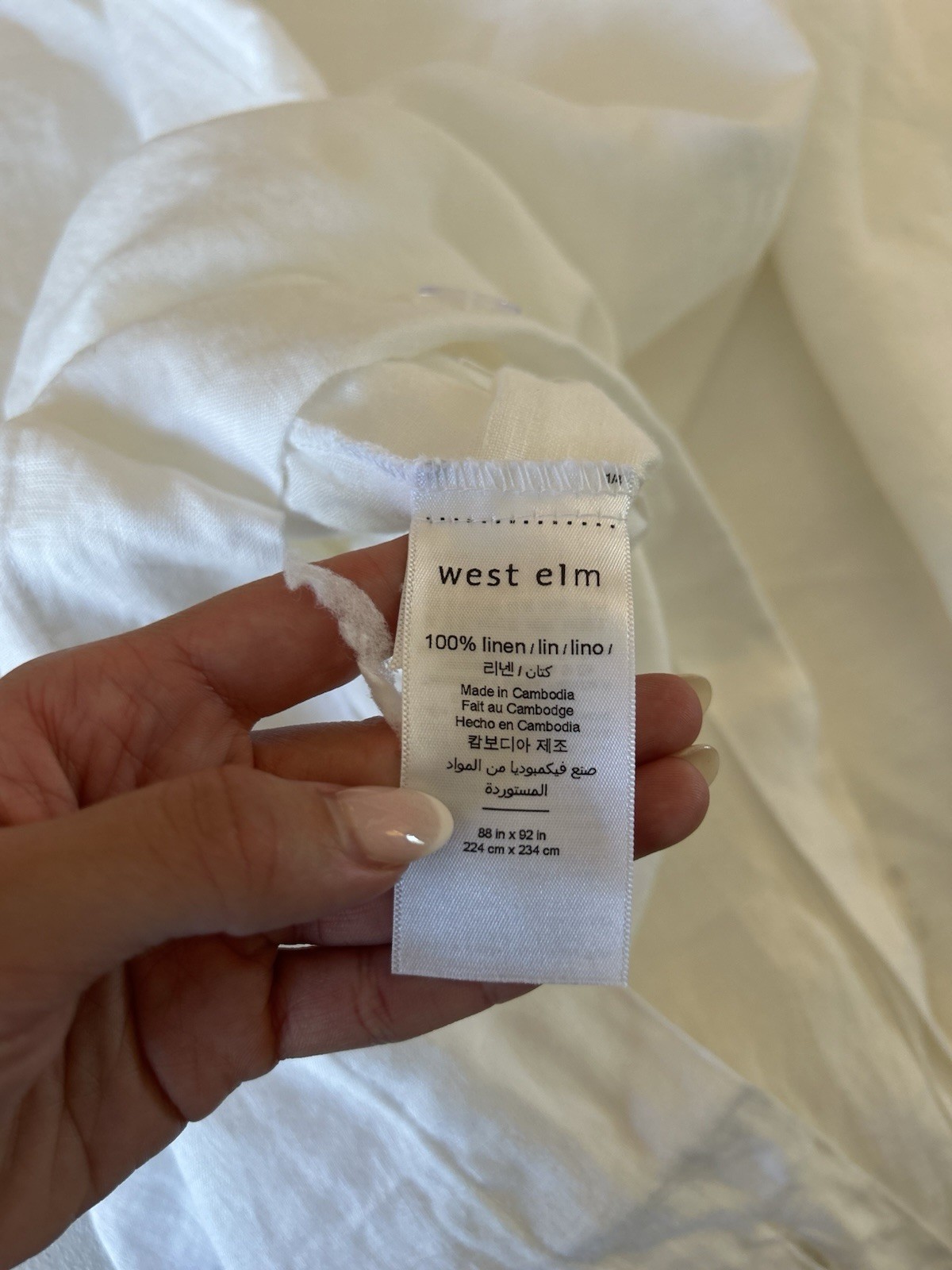 как выглядит West Elm European Flax Linen FULL/QUEEN Duvet Cover White CUT TAGS USED READ фото