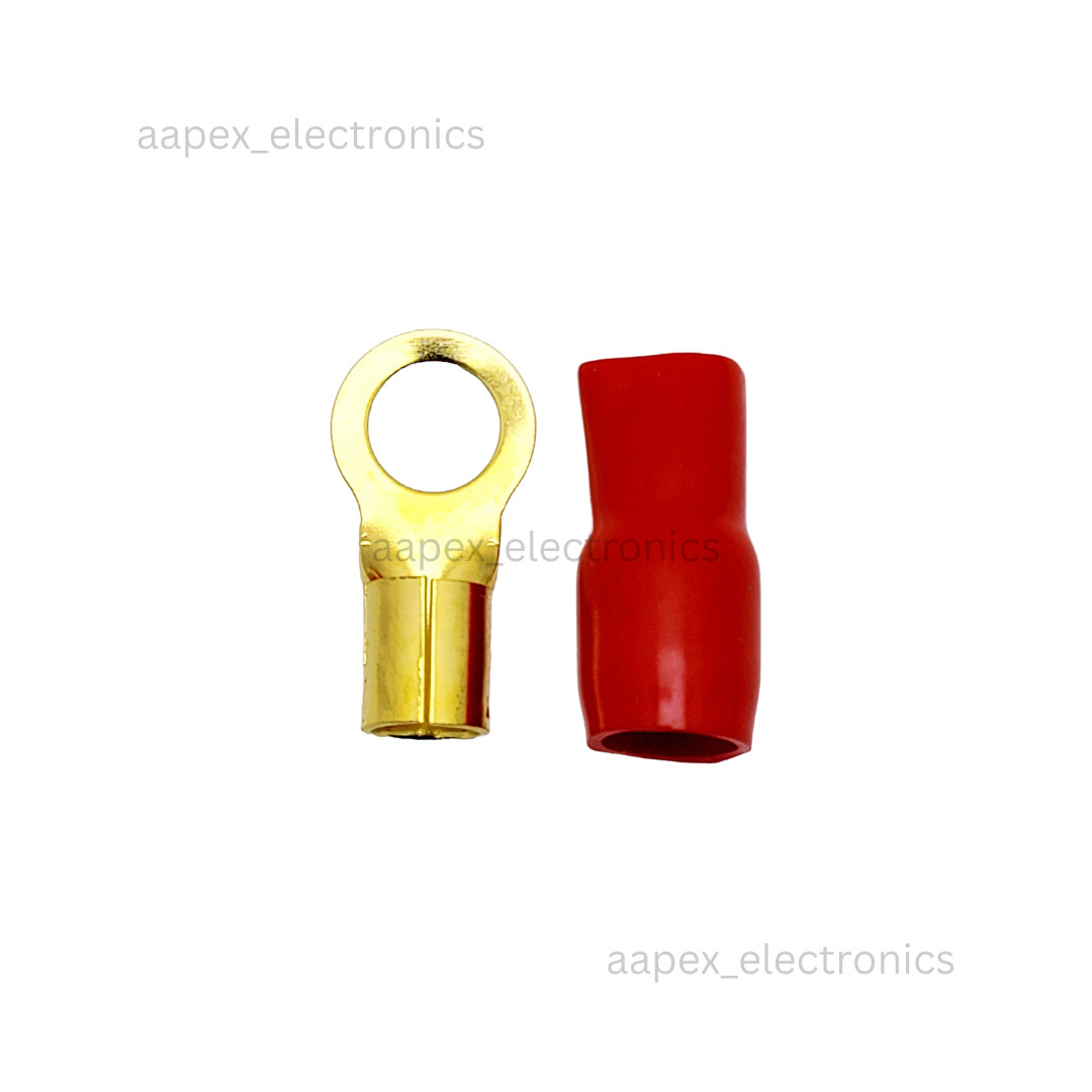 4 Gauge Copper Ring Terminal 3/8 w/ Red or Black Boots 4 AWG - 10/20/50/100 Lot