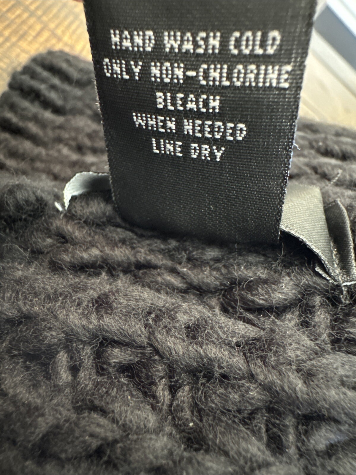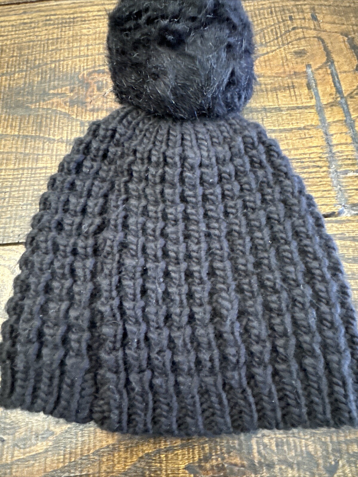 DKNY Women s Beanie Acrylic Black Knit Faux Fur Pom Pom, One Size Fits Most