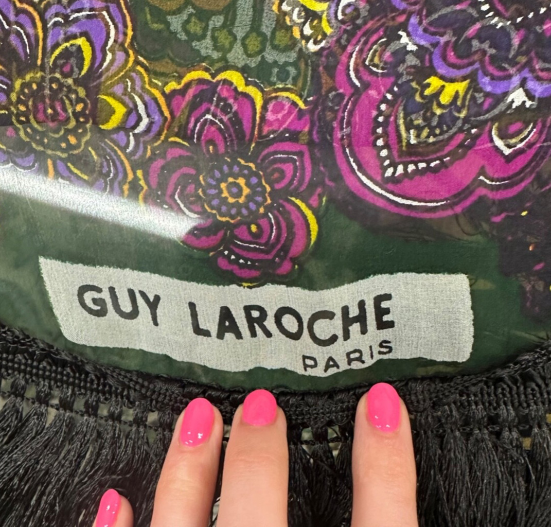как выглядит Vintage 1970s Guy Laroche Chiffon Paisley Fringe Scarf/Shawl фото