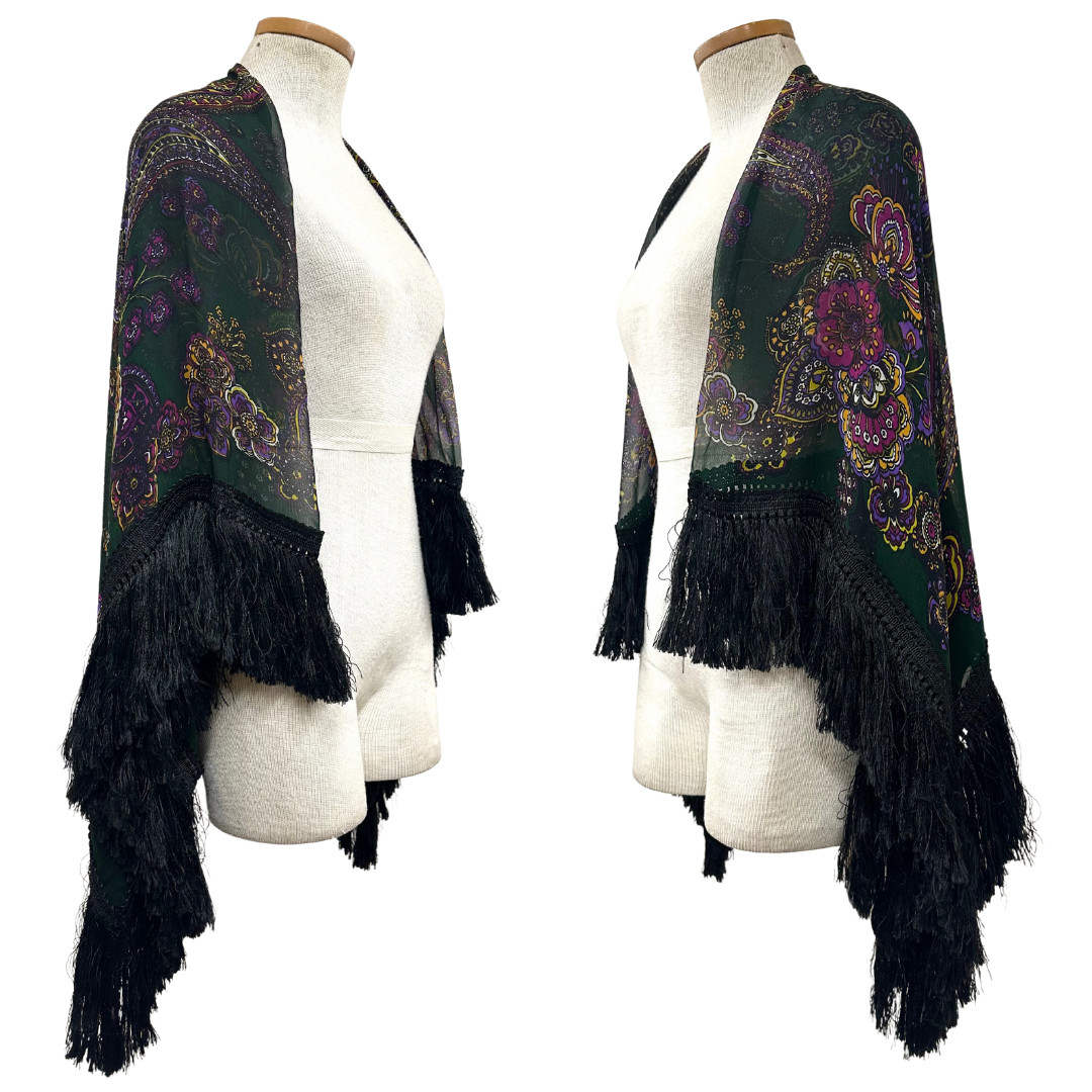 Vintage 1970s Guy Laroche Chiffon Paisley Fringe Scarf/Shawl