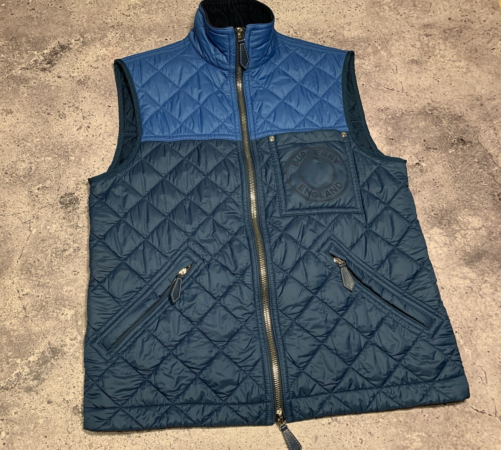 Burberry Mens Blue Zip Logo Graphic Colour Block Recycled Nylon Gilet Size M