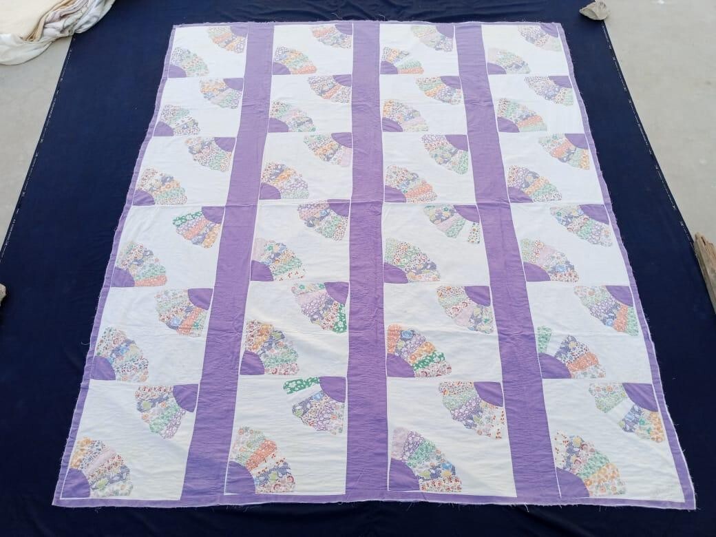 Vintage Beautiful Quilt Different Pieces Hand Woven size 84x72 inches