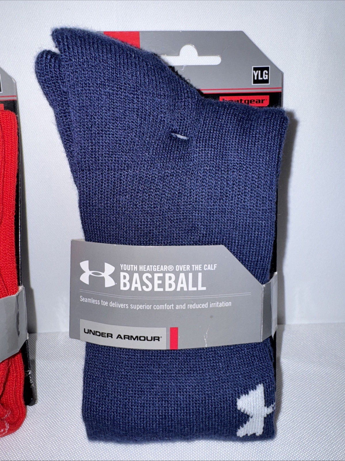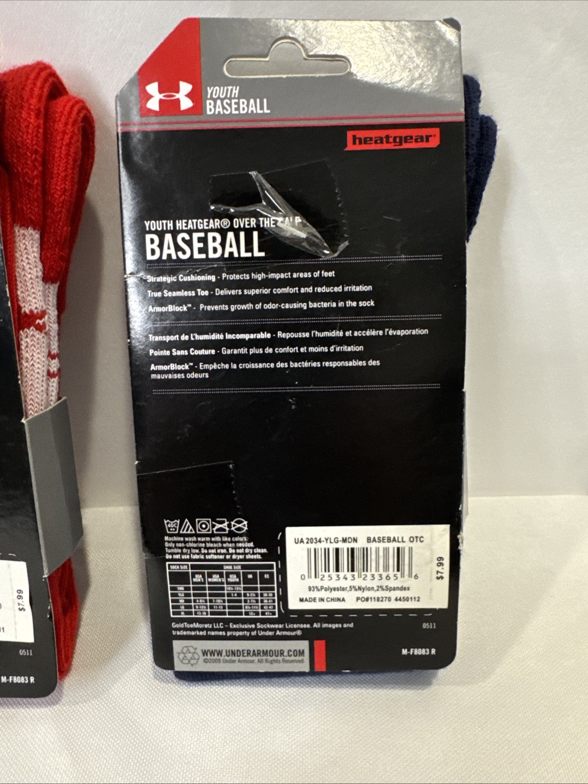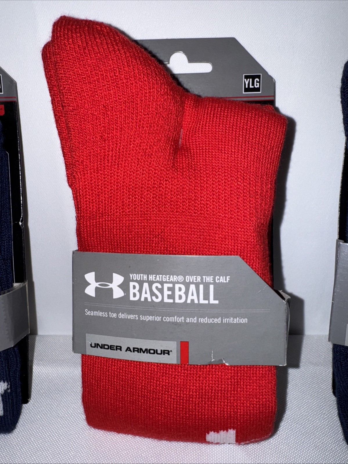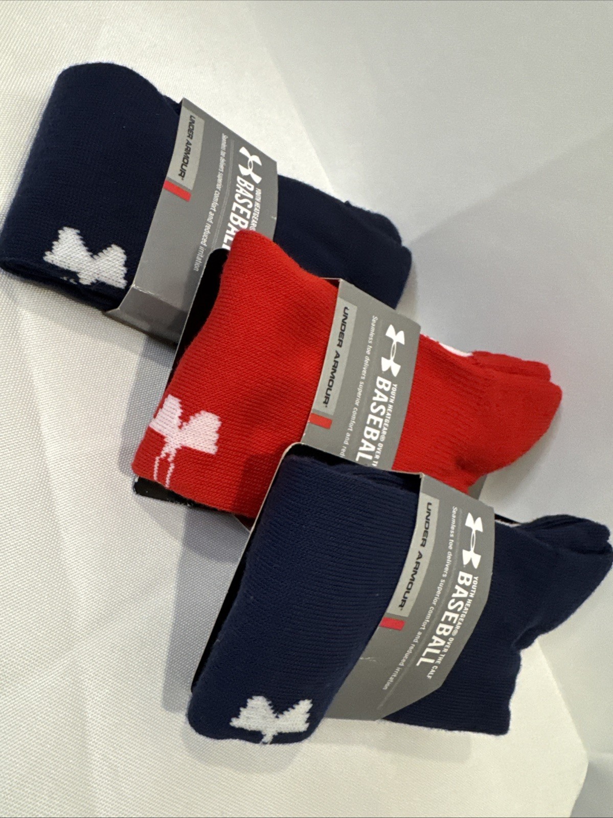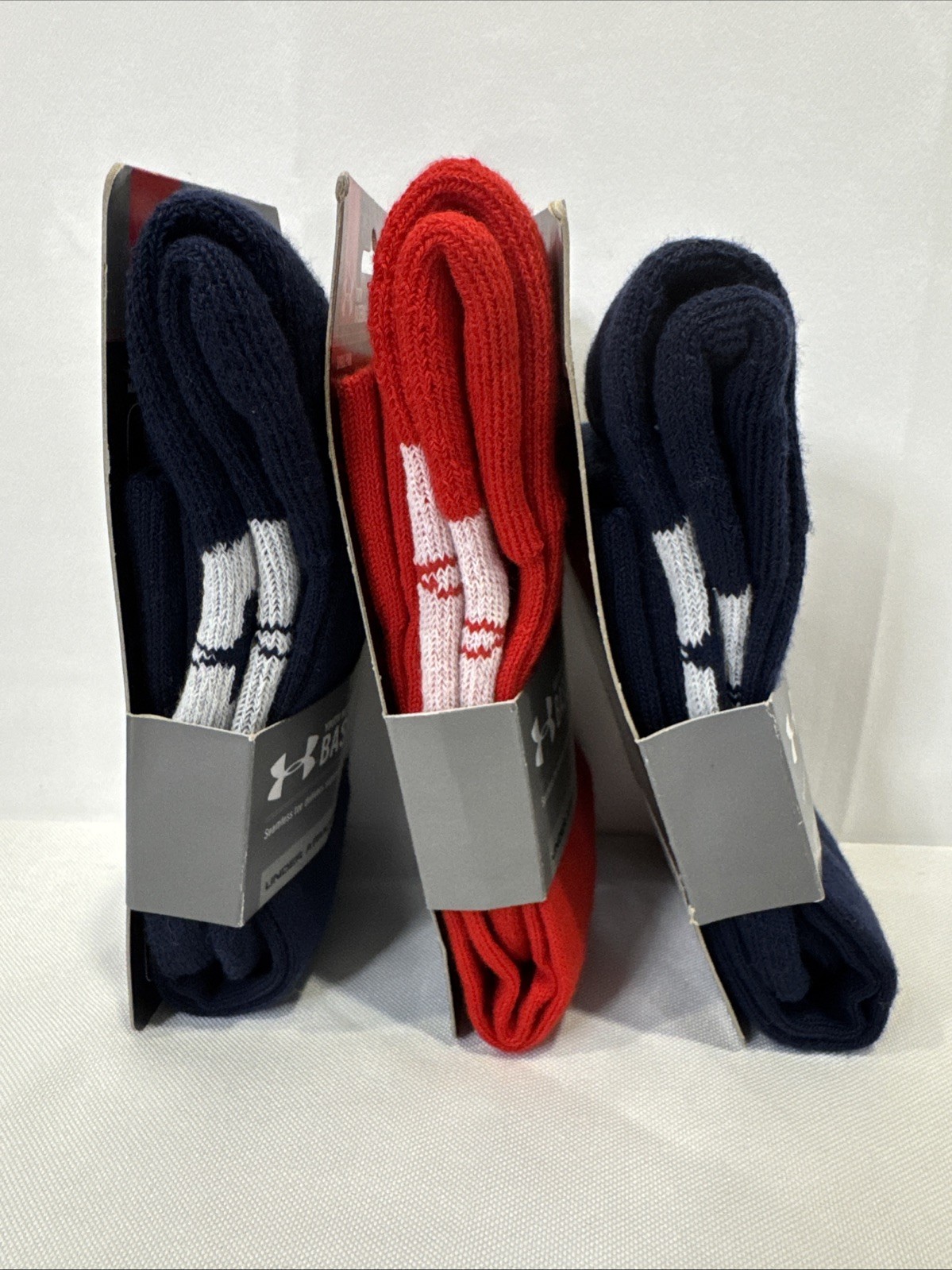 Under Armour Over The Calf Socks 1 X Red/White 2 X Blue/White Youth Large Uni X3