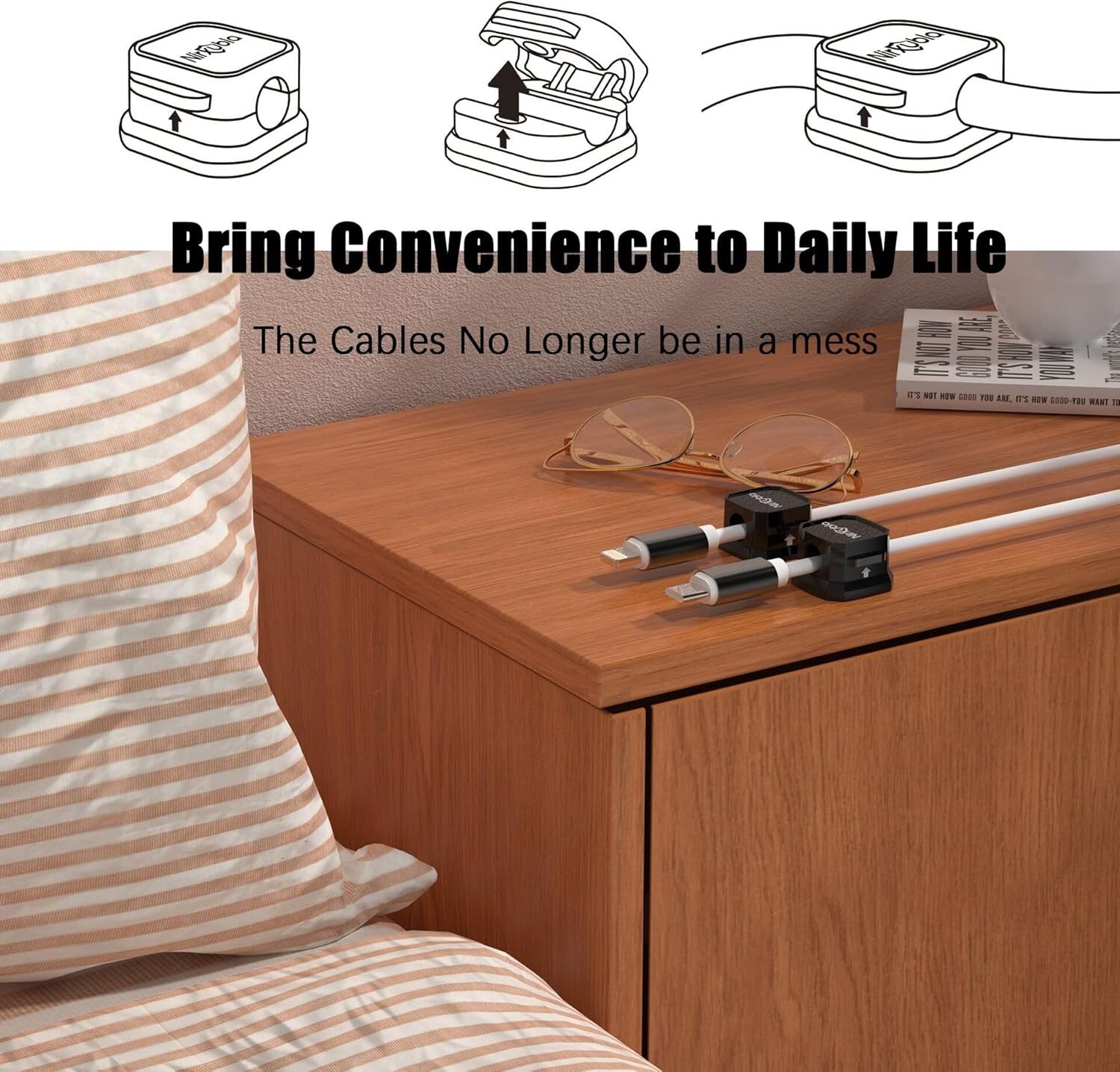 9 Pack Magnetic Cable Clips Wire Organizer Desk Cord Management Adhesive Black