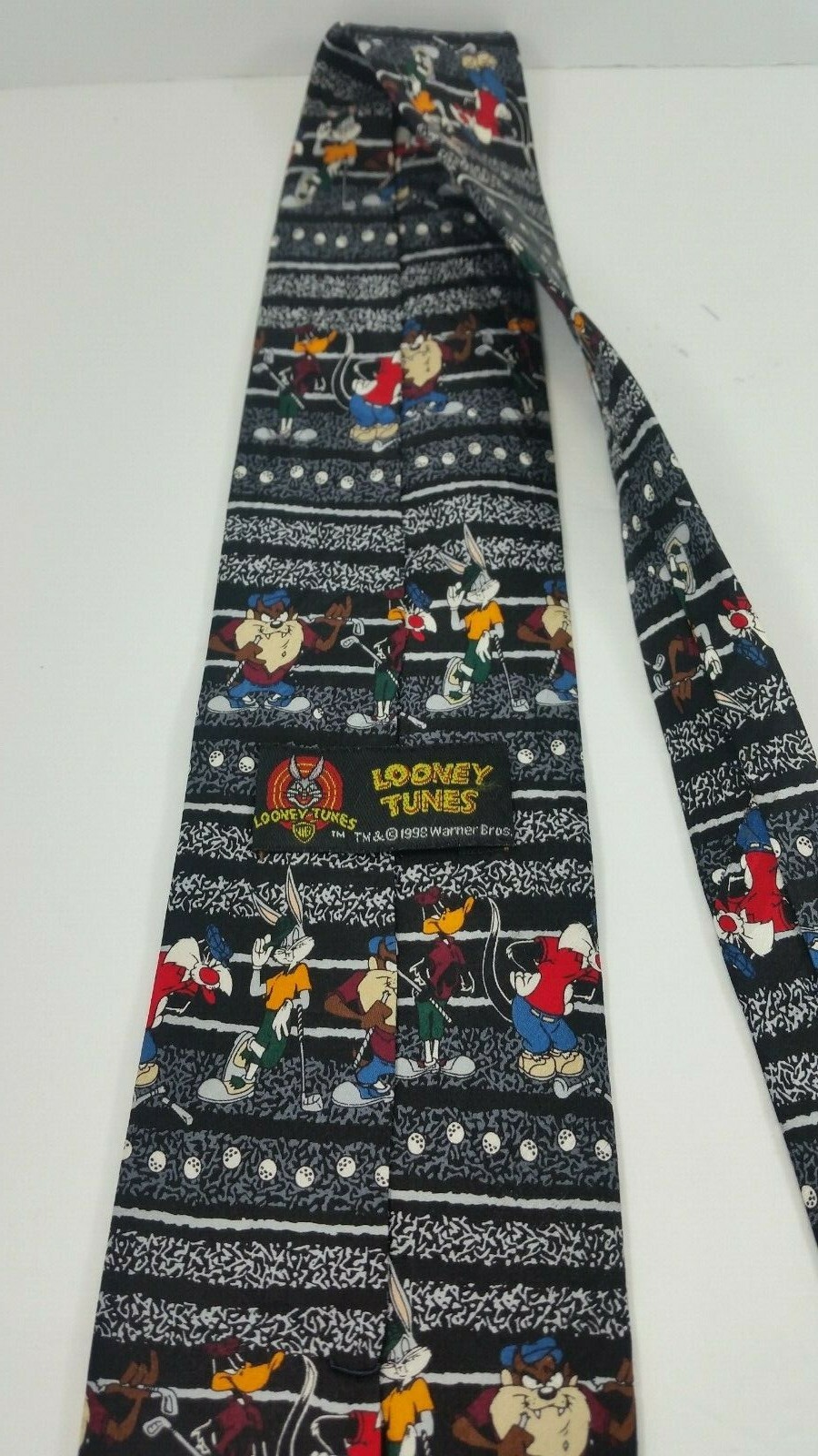 VTG Looney Tunes Tie Golf Bugs Bunny EUC Black Novelty Character Necktie Silk